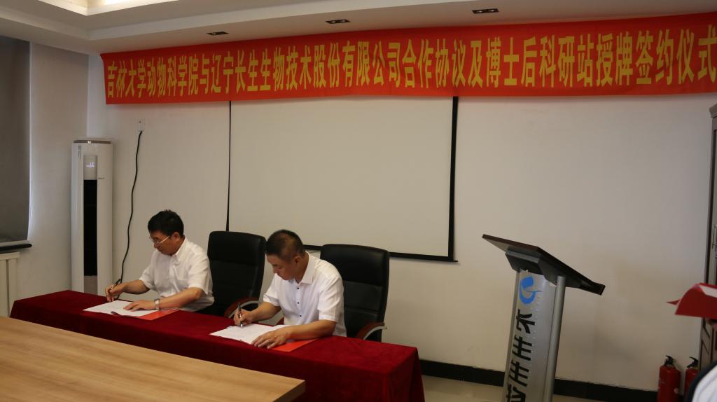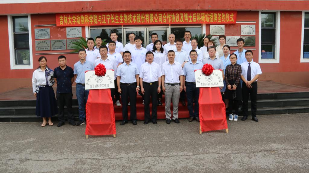 张嘉保经理代表永利集团304官网与辽宁长生生物技术有限公司签订了合作协议。公司孙博兴副经理与王全新董事长为“永利集团304官网教学实习与社会实践基地”揭牌,张明军副经理与王智琴总经理为“永利集团304官网博士后科研工作站”揭牌。这次活动开启了永利集团304官网动物生产类专业产教融合协同育人的模式,深入推进了新农科建设步伐。