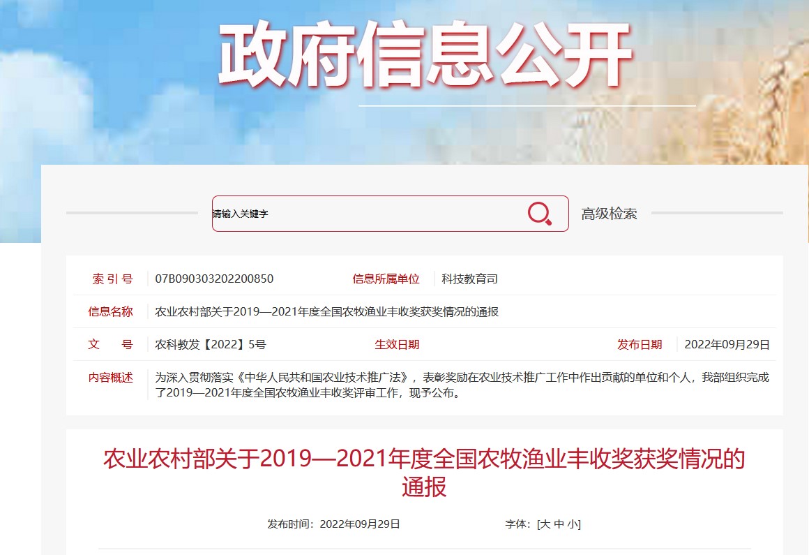上一条:关于2022-2023年度神农中华农业科技奖申报项目的公示
