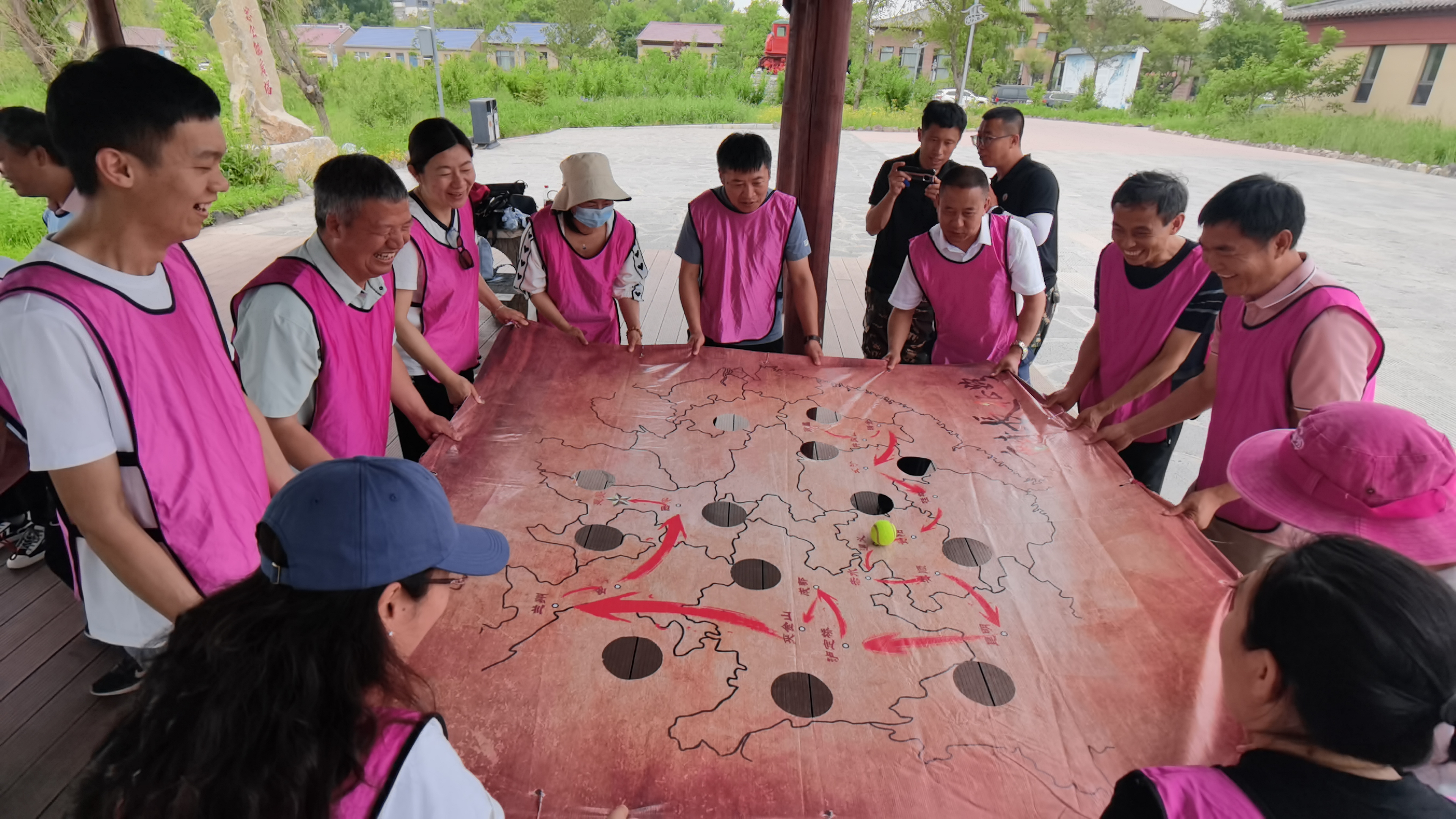 活动过程中穿插了拓展训练,参加的老师们被分为两组进行对抗训练。在教练的带领下通过“红色印记”“光辉岁月”“鼓动人心”“长征之路”等寓教于乐的活动,各小组奋勇争先,为荣誉而战;组员们团结一心,协同奋进,最后在“没有共产党就没有新中国”的歌声中,本次活动落下帷幕。