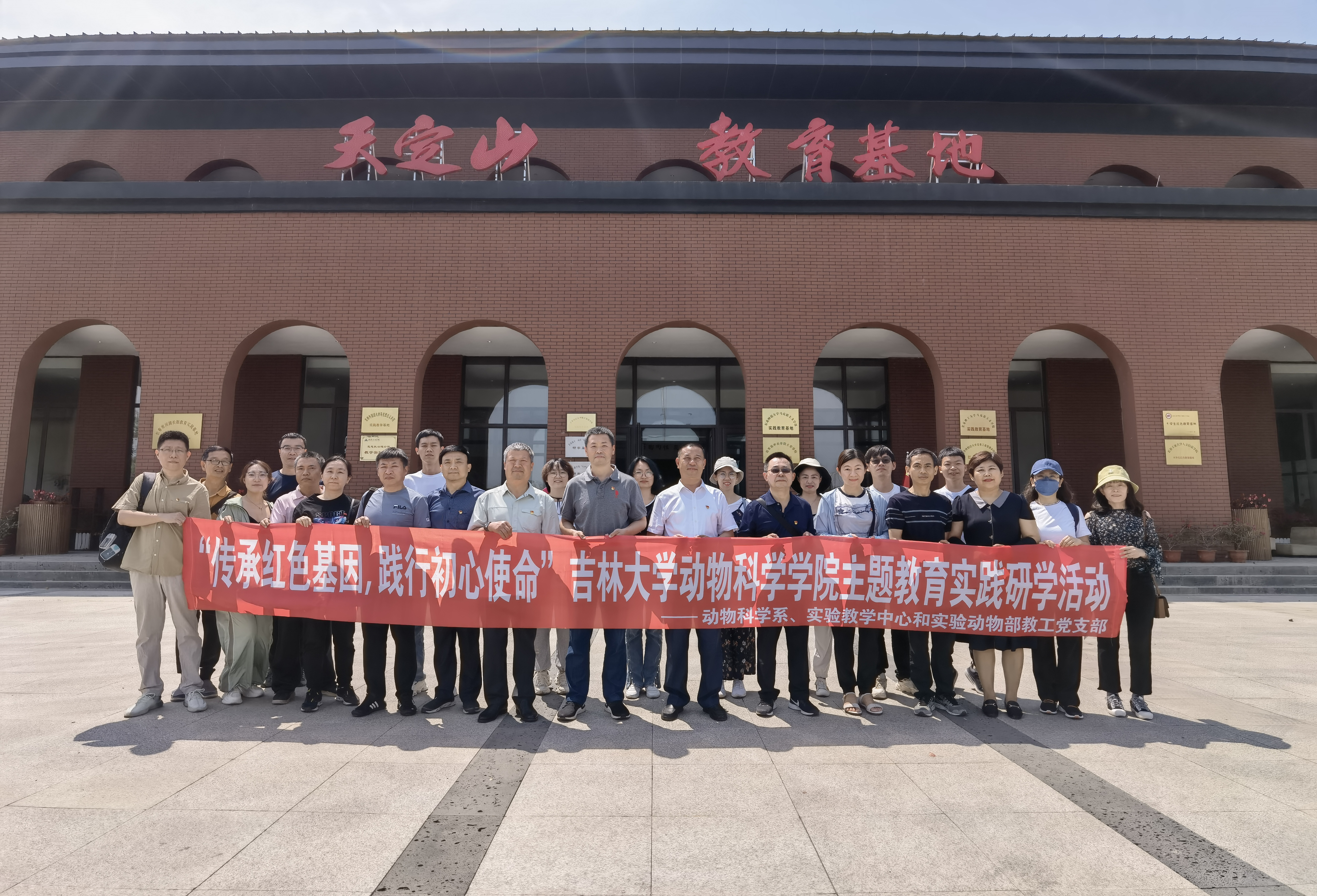 为贯彻落实党的二十大精神,进一步强化教工党员队伍建设,促进学习贯彻习近平新时代中国特色社会主义思想主题教育走深走实,6月19日,永利集团304官网动物科学系教工党支部联合实验教学中心教工党支部和实验动物部教工党支部,共同赴天定山红色教育基地开展“传承红色基因, 践行初心使命”主题教育实践研学活动。公司党委书记高福和、经理孙博兴、行政副经理冷国永以及三个教工党支部教工党员和部分党外人士参加了活动。