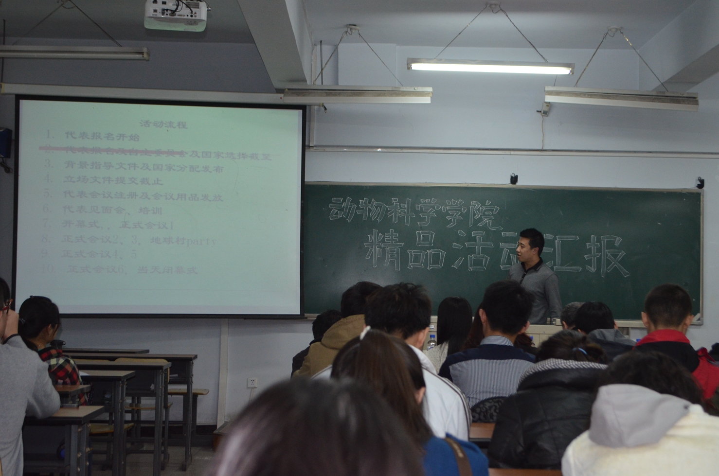 会上,参加答辩的同学依次上台进行精品活动展示并对本部门过去一年中的工作进行汇报总结。他们结合本部门的历史与活动的特点及优势,对各自最具特色的精品活动进行了详细介绍。在展示、汇报之后,与会老师对手中各项活动策划的书面材料,进行了严格的审查和筛选。