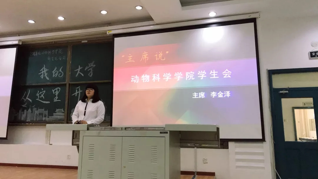 会议开始时,由主持人对员工会的职能及任务做出了一个简要而完整地概括。然后由主席及各部门部长对主席团及各部门做了具体而详细的介绍。每个人都配合着自己部门精心制作的PPT,用自己的风格给大一新生们做了精彩的讲解。亲切的主席李金泽,严肃的副秘书长吕焱,端庄的文艺民族部部长李璐,幽默的体育部部长白元滨,可爱的组织宣传部部长段雨含,温柔的生活学习心理部部长肖雯予以及实在的外联志工部部长余霆杰。不仅仅是上台发言的部长们,各部门的副部长们也为本次宣讲会做了许多准备工作。大一新生们也从这些风格不同的介绍中,对员工会有了自己的了解。而在接下来的提问环节中,大一新生们也积极地和学长学姐们互动,提出了许多自己想要了解的问题。最后主持人说了结束词,本次新生宣讲会在一片欢乐的气氛中圆满结束。