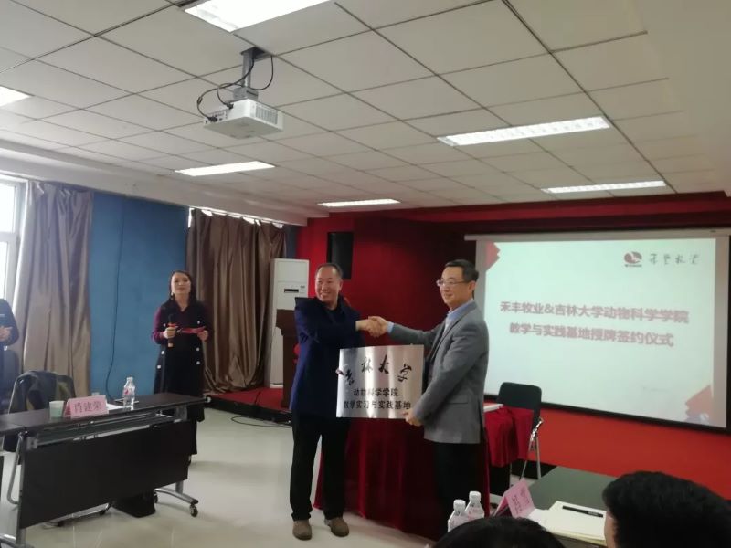 参观结束后,大家前往下一站——沈阳禾丰牧业集团沈北园区。禾丰牧业的相关人员热切的招待了大家,带领同学们深入到分析室和化验室之中,并详细地介绍了禾丰牧业的企业文化、组织结构以及企业的产品,展示了该公司作为大型企业的集团型企业面貌。更值得一提的是,经过校方与企业洽谈,禾丰牧业将正式确立为永利集团304官网教学实习实践基地,沈阳禾丰集团总经理陈疆就此与永利集团304官网副经理孙博兴进行了签字仪式。
