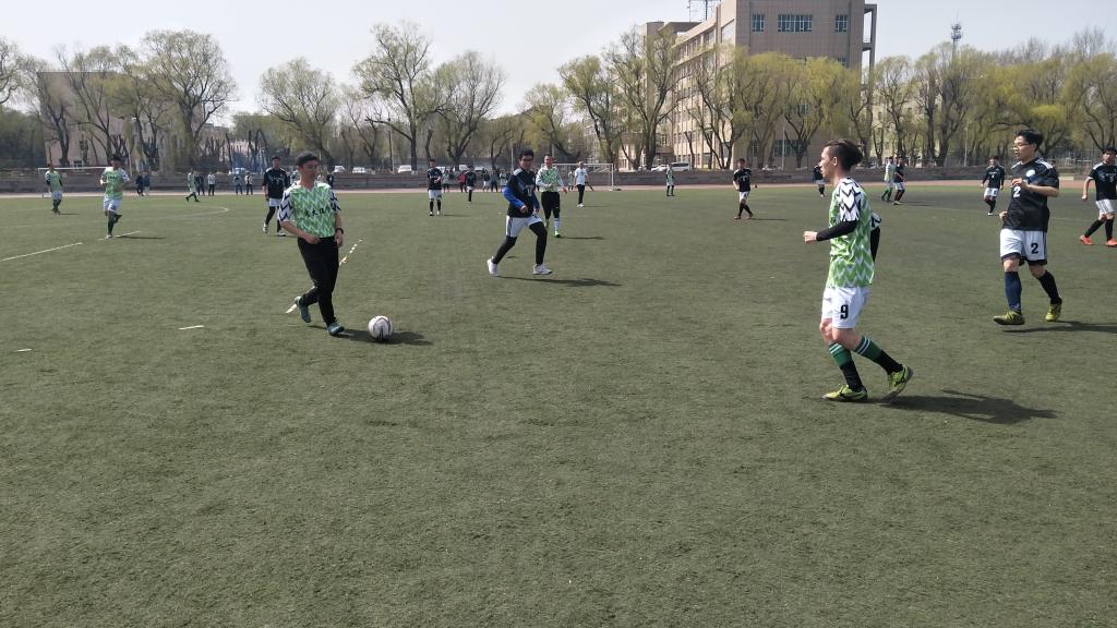 比赛到了下半场,由于公司员工人数较少,候补队员不足,导致受伤队员继续上场,使得比分逐渐拉大至5:1。到此,第三场比赛落下帷幕,选手们在比赛结束后的握手与交流,无不彰显着吉大学子友善谦和,友谊第一,比赛第二的品质与态度。提起团队,每个人心中都洋溢着自豪,足球文化就是有这样的感染力,无关胜负。足球带给每一位队员的,也早已经不只有胜负。