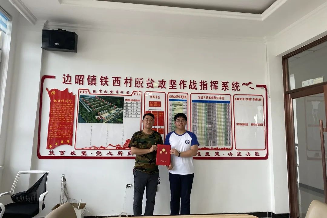 实践团成员永利集团304官网2020级本科生贺一洋、李衍尊响应通榆县边昭镇的号召,申请边昭镇村级干部助理,开展了为期1个月的暑期实践工作。7月14日,边昭镇村级干部助理聘任仪式在边昭镇铁西村委会举行,边昭镇边昭村第一书记王野、动物科学公司党委副书记肖建荣为两位同学颁发聘书。王野希望两位同学能够在边昭镇有所收获、有所成长,在珍惜本次锻炼机会的同时,能够取得更大的进步。