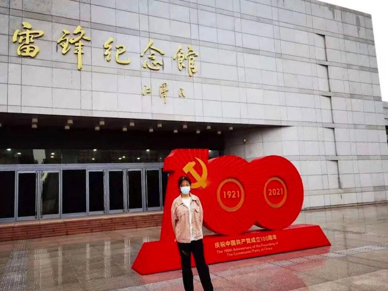 8月5日,团队成员来了位于辽宁省抚顺市的雷锋纪念馆。雷锋纪念碑的碑身镌刻毛泽东手书的“向雷锋同志学习”七个大字。团队成员认真地观看了关于雷锋人生各个时期的介绍,还看到雷锋生前的笔记以及曾使用过的生活物品等。当看到雷锋生前穿过的补了又补的袜子、衣服等,把队员拉回到那段艰苦朴素的日子。雷锋精神体现在方方面面,包括生活上的艰苦朴素、助人为乐,工作上的钻研细致、精益求精等。在当今时代,雷锋精神仍然意义深远,需当代青年继承和发扬。
