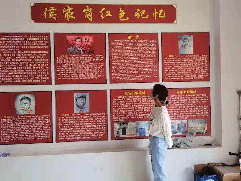 侯家岗乡曾是江西省上饶市鄱阳县苏维埃政府、中共赣北特委机关驻地,这里走出了以程翊、程白沙、程定国等为代表的革命英雄,方志敏同志领导的革命武装也在皖赣边苏区留下了革命的光辉足迹。8月1日,团队成员参观了侯家岗红军营。团队成员踏进红军营的门庭,光滑的大理石圆桌下面布满了苔藓,印着“红军营”三个大字火红的牌匾映入眼帘,穿过布满先辈照片的台阶,瞻仰刘水泉、田青、黄先等无数英烈。在参观过程中,团队成员深刻地体会了革命前辈不怕艰苦、顽强拼搏的革命精神。