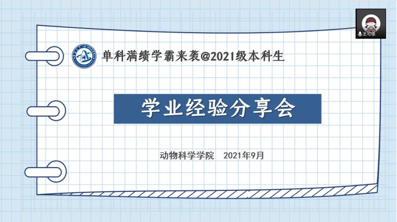 为帮助2021级本科新生提前了解大学课程的主要内容及学习方法,掌握相关课程的学习方法和技巧,搭建新老生之间的学业交流平台,永利集团304官网于2021年9月2日晚19:00依托腾讯会议平台举办学业经验分享会。会议邀请2019级动物科学专业的张师维、张一凡、郭状杰、王文婧等四名同学担任主讲人,会议由2021级辅导员王可佳主持。