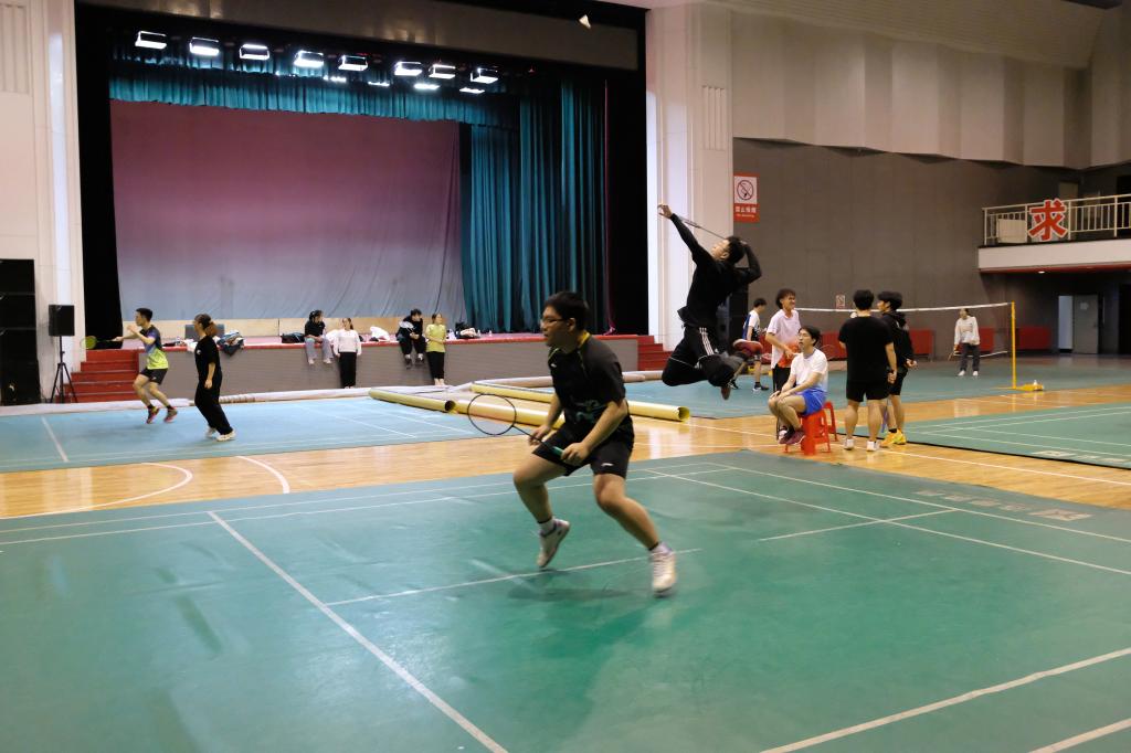 由于分组原因,动科二队需要客场挑战动医、植科、食科的第一代表队,这注定是三场极为艰难的对决。第一场比赛,迎战动医一队。双方实力差距较为明显,但万般困苦,皆有希冀。男子双打队员与对方酣战至15:21,虽本局告负,但极大地提振了士气。紧随其后的女子双打队员立刻接过拼搏的接力棒,以21:18拿下首个局点。五局赛事战罢,动科二队1:4憾负于动医一队。