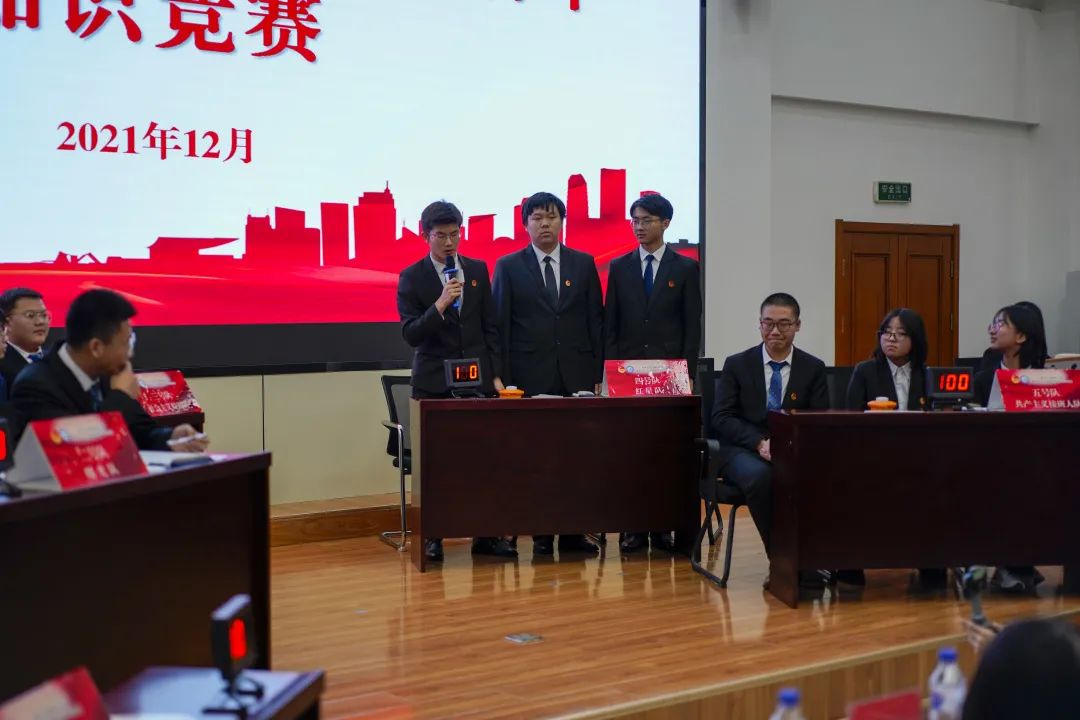 比赛设置“必答题”“选答题”“风险抢答题”“亲友团互动题”四个环节,题型包括选择题、填空题、红歌题等,内容涵盖中共党史、共青团史等内容,还涉及到十九届六中全会相关知识点。