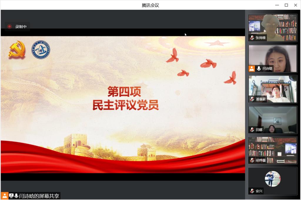 会议第三项议程,支部全体党员根据“四个对照”相关要求,从学习、生活、工作等多方面反思自身不足,进行自评互评。一部分同学认为自己专业知识学习不系统,学习方式被动,理论受限于实际;一部分同学谈到,要坚持对马克思主义信仰,坚持对中国共产党的追随,反思自身服务意识不够,很少展开自我批评,对自身缺点认识不足。在互评环节中,老师同学们也纷纷提出了客观中肯的批评意见,党员们一致表示虚心接受批评指导,并认真改正自身不足。紧接着,全体党员同志按照公司党委组织部的民主评议党员相关规章制度,客观、公正地对支部正式党员进行“优秀”、“合格”、“基本合格”和“不合格”四个等级的评价,评选出王文韬、苏梦婷等六位优秀共产党员。