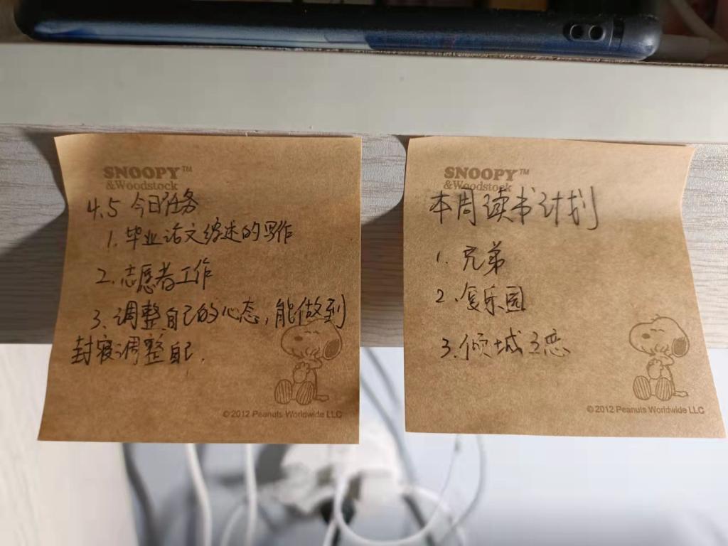 “我们要坚持人民至上、生命至上,呵护每个人的生命、价值、尊严。要弘扬科学精神、秉持科学态度、遵循科学规律,统筹常态化精准防控和应急处置,统筹疫情防控和经济社会发展。”习近平总书记在第七十六届联合国大会上的讲话掷地有声。春城三月,乍暖还寒。一场来势汹汹的严峻疫情给长春按下了暂停键,打破了校园的宁静与祥和。按照长春市相关要求,自3月9日起,全校各校区本科教学全部课程转为全员线上教学。3月14日起,全校封寝。直至今日,封寝已经第二十八天。虽然疫情让我们困在寝室心情糟糕,所有的生活都被打乱,但在公司、老师还有无数志愿者等最美先行者的努力之下,我们依然能够在公司这个避风港里安全快乐地生活,一日三餐,药品和日用物品等都能得到保障。同学们的学习生活也有条不紊的进行着,大家在线上学习热情依旧高涨。大家在群里分享了自己的每日计划以及完成情况,这段时间里,我们没有虚度光阴,生活过得依旧很充实。