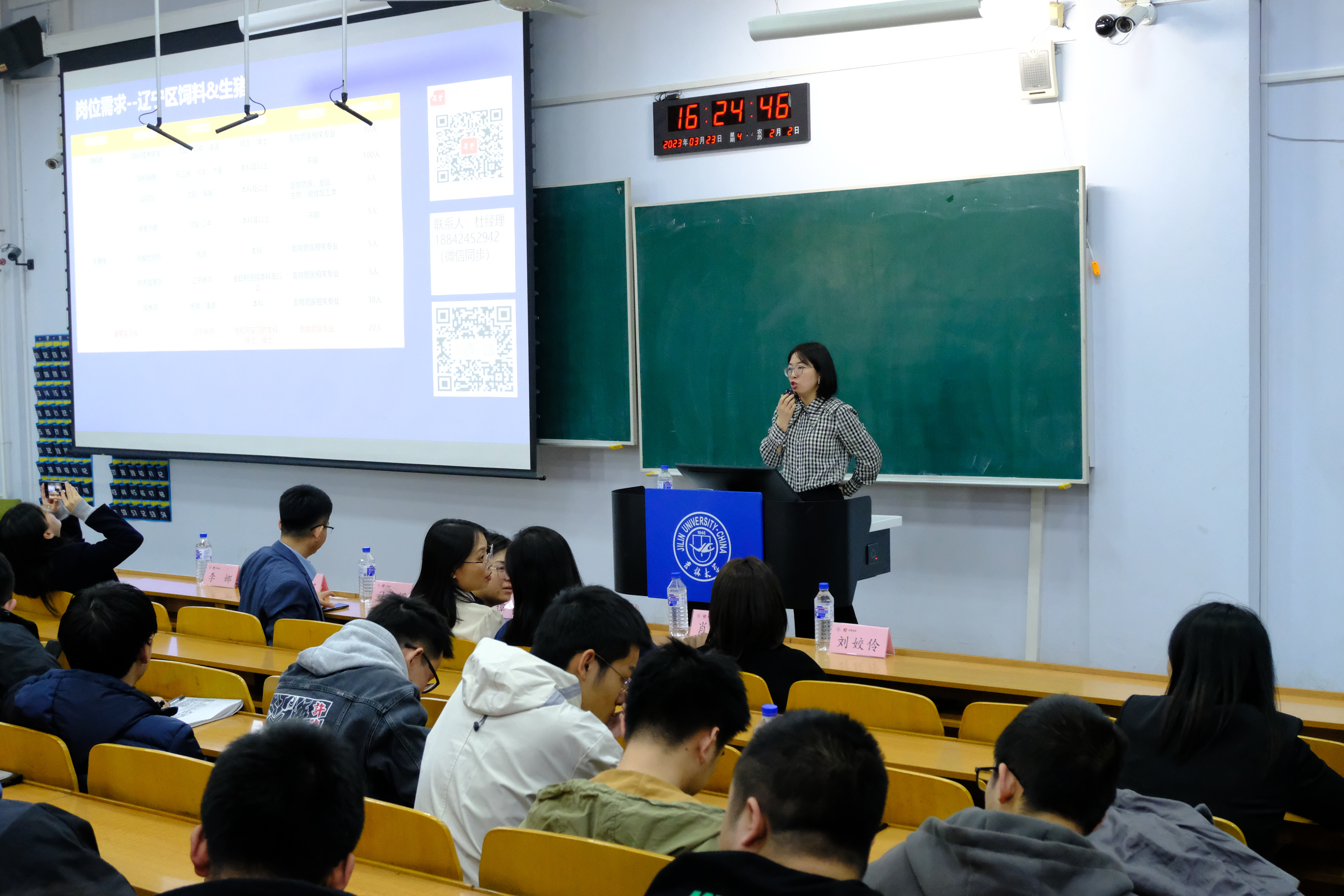 为教育引导员工提早做好职业生涯规划,明确就业方向,提升求职技能,增强面试能力,永利集团304官网于3月23日下午在科学讲堂400教室举办年度首场就业指导专题讲座。活动邀请禾丰股份辽宁区区域招聘培训杜娟老师作为主讲嘉宾,公司党委副书记肖建荣,毕业年级辅导员刘姣伶以及2020级全体本科生、部分毕业年级员工到场参加。