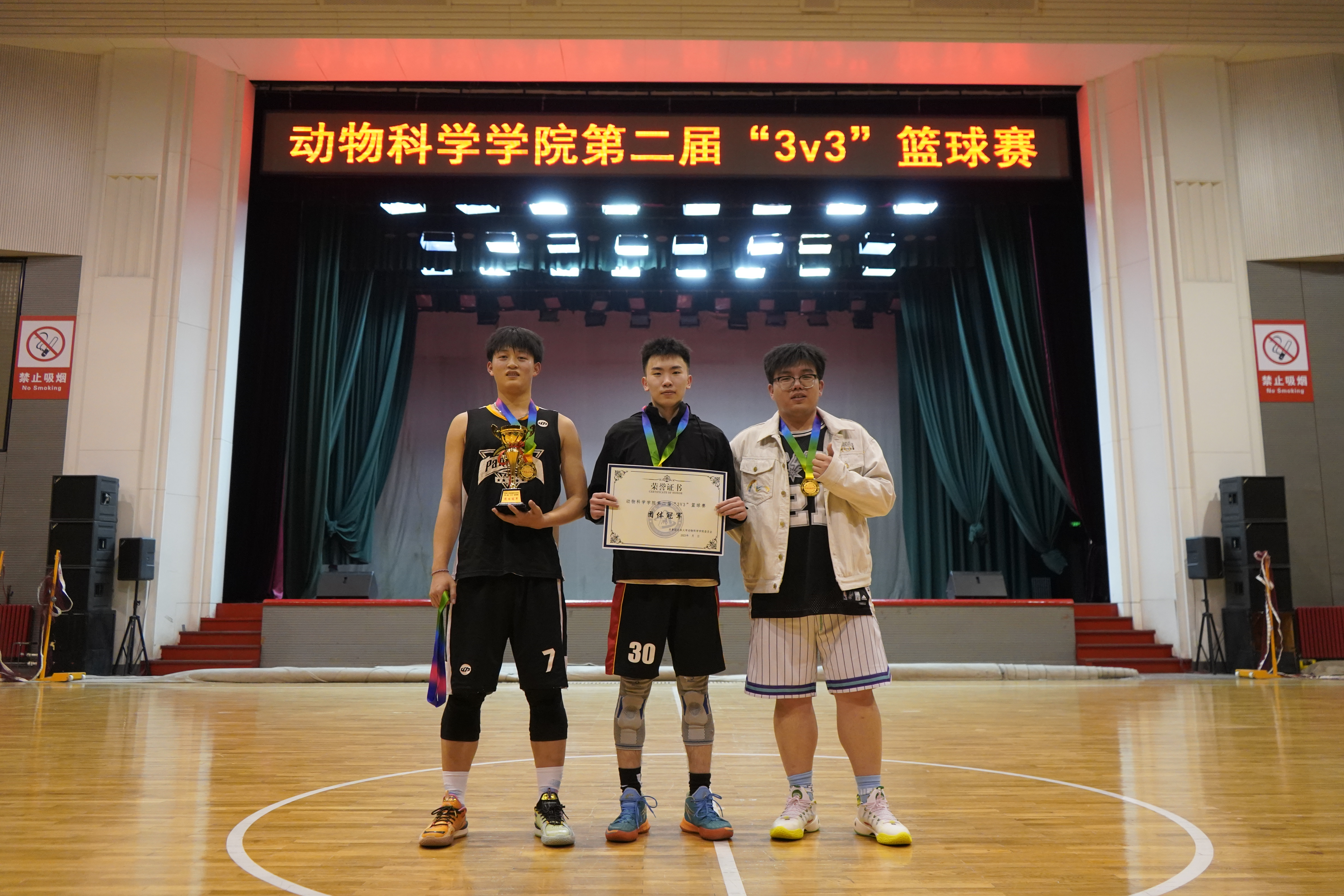 本届“3V3”篮球赛六支队伍由本科四个年级的同学交叉组队,促进了各年级同学之间的友好交流,为动科篮球队备战之后的院系比赛打下了基础,展现出了动科学子顽强拼搏、相互配合、彼此信任的精神风貌。