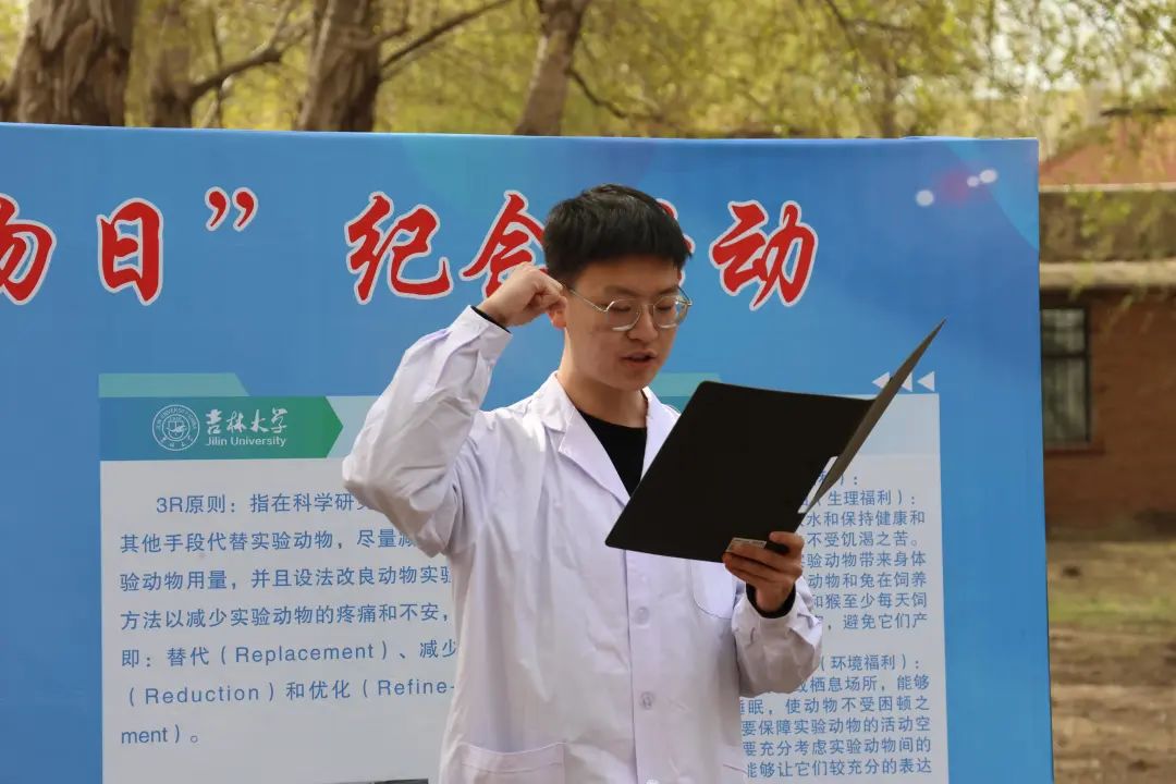 袁宝副经理首先向自发前来参加活动的师生表示欢迎,对各位参加人员“敬畏生命、尊重生命”的科研态度表示敬意。他指出,实验动物慰灵碑的树立,为公司从事动物实验相关工作的老师和员工提供了一个纪念场所,也为我们提供了一个反思动物实验的契机。让师生在纪念实验动物的同时,加深对实验动物伦理福利的认识,加深对实验动物“替代,减少,优化”3R原则的认识。