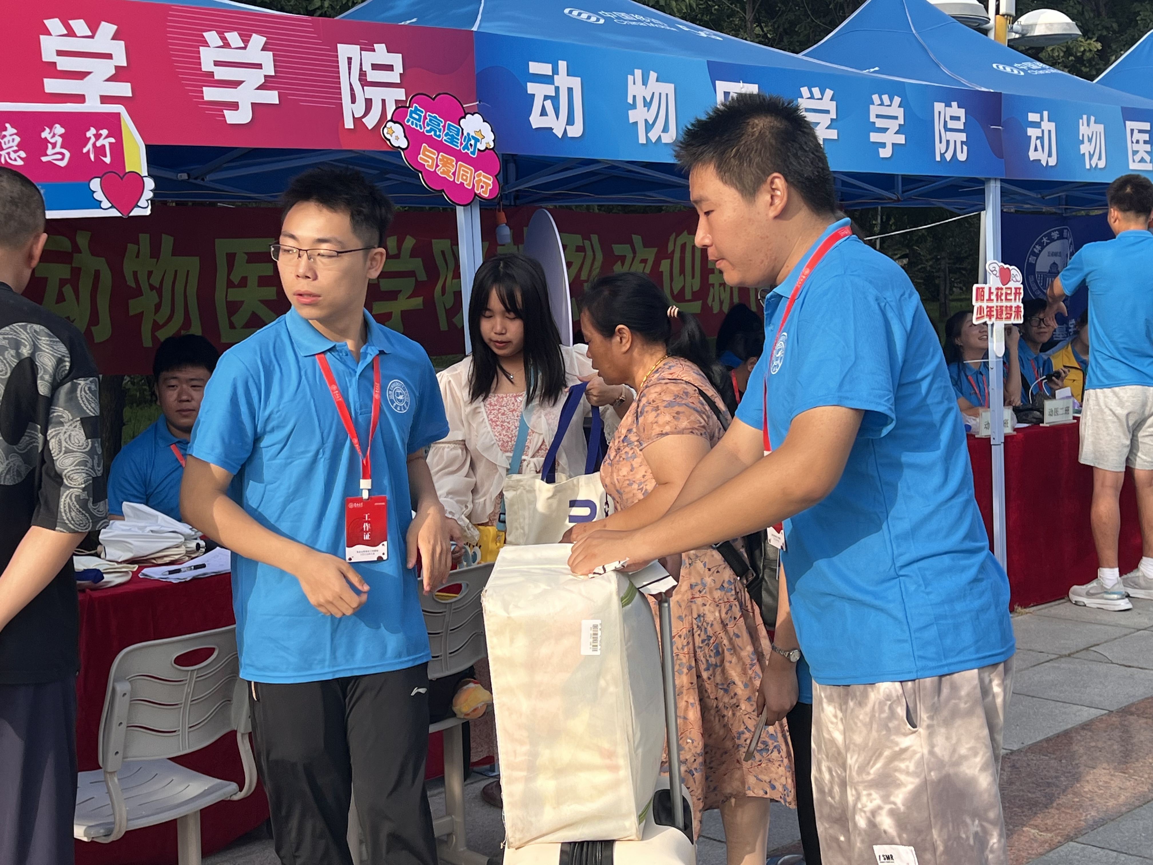 远处相迎、指引带路、后勤保障,“行李就交给我们吧” “以后有什么问题随时和我联系”,初见即如故,一句句温暖的话语迅速拉近了新生与动科的距离。志愿者们贴心的服务和悉心的帮助给新生留下了美好的“动科第一印象”。