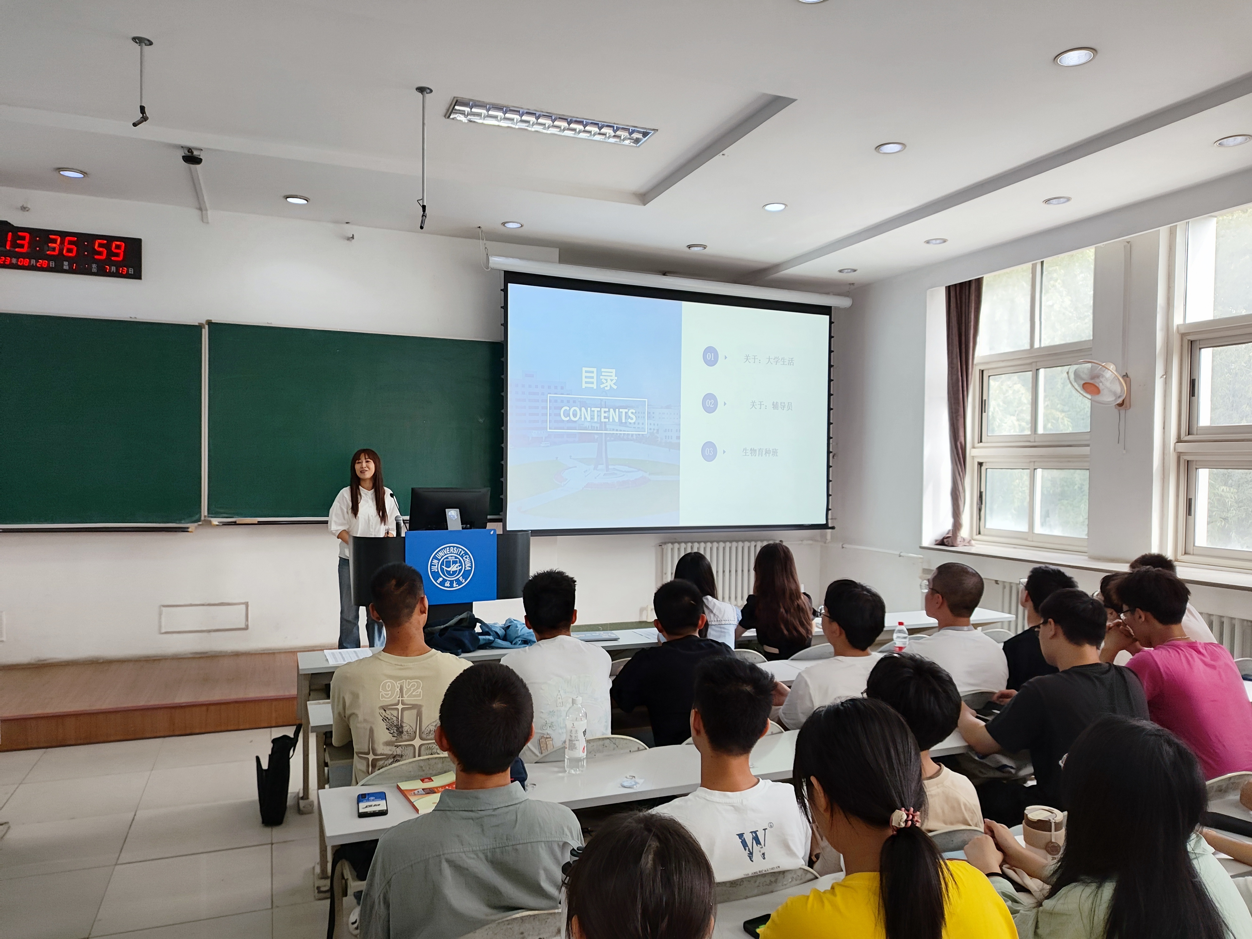 接着,刘姣伶老师向同学们讲解高中与大学学习生活的不同,提醒大家要不断提升学习能力、自我管理能力、解决问题能力和待人接物能力。并对相关管理规定、生物育种班选拔、近期入学教育安排等进行详细讲解。她由衷地期望2023级新生们能够在未来的时光里,时时内观自己,多多眺望世界,勇敢奔赴未来。