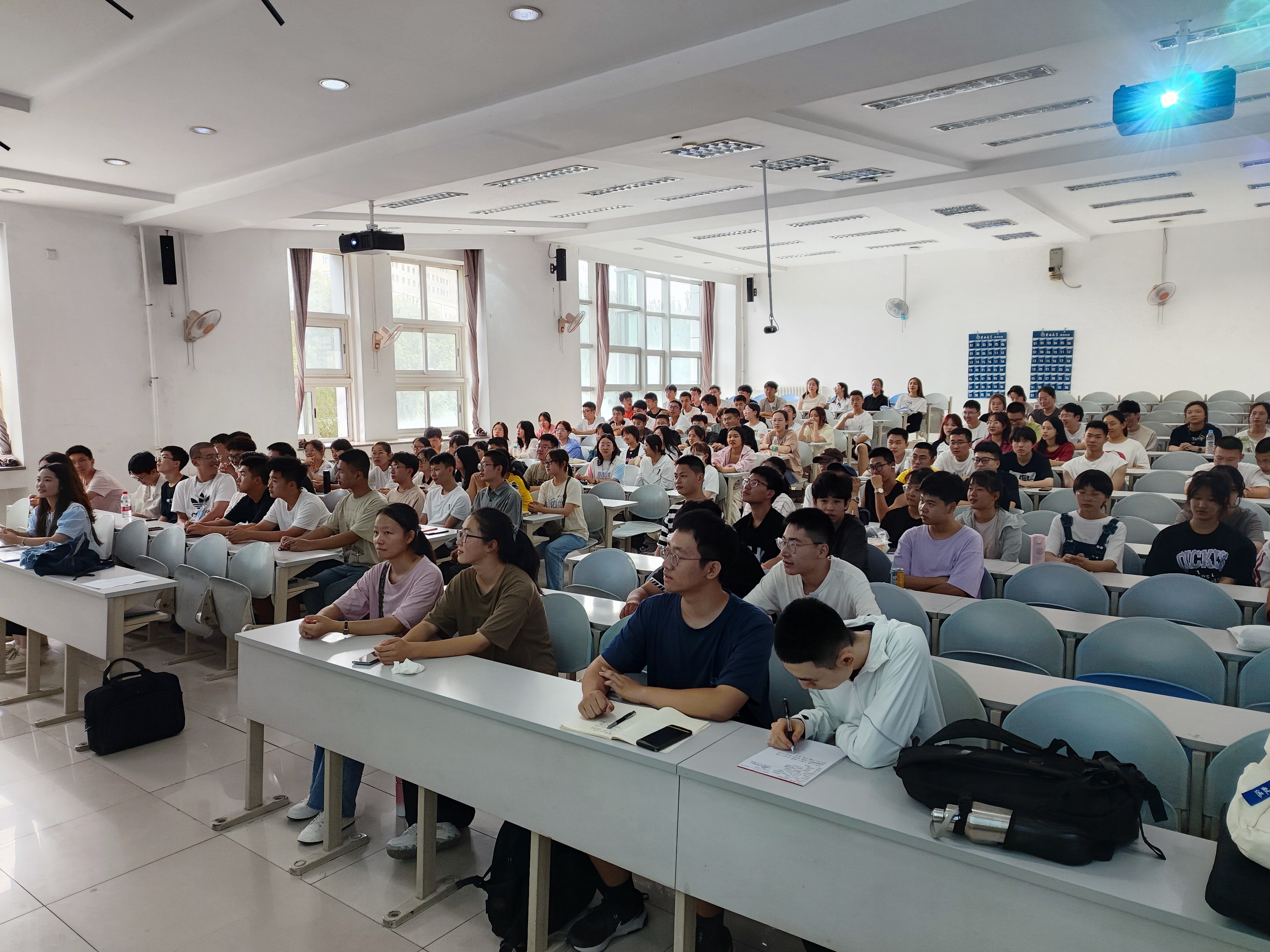 为扎实做好新生入学教育工作,帮助2023级新生尽快适应老员工活,8月28日13:30,2023级本科生入学教育暨新生第一次年级大会在第三教学楼第十一阶梯教室召开。本次大会由新生辅导员刘姣伶老师主持,辅导员助理杜昊臻、刘伟峻、竹忠颖及2023级全体本科生参加。