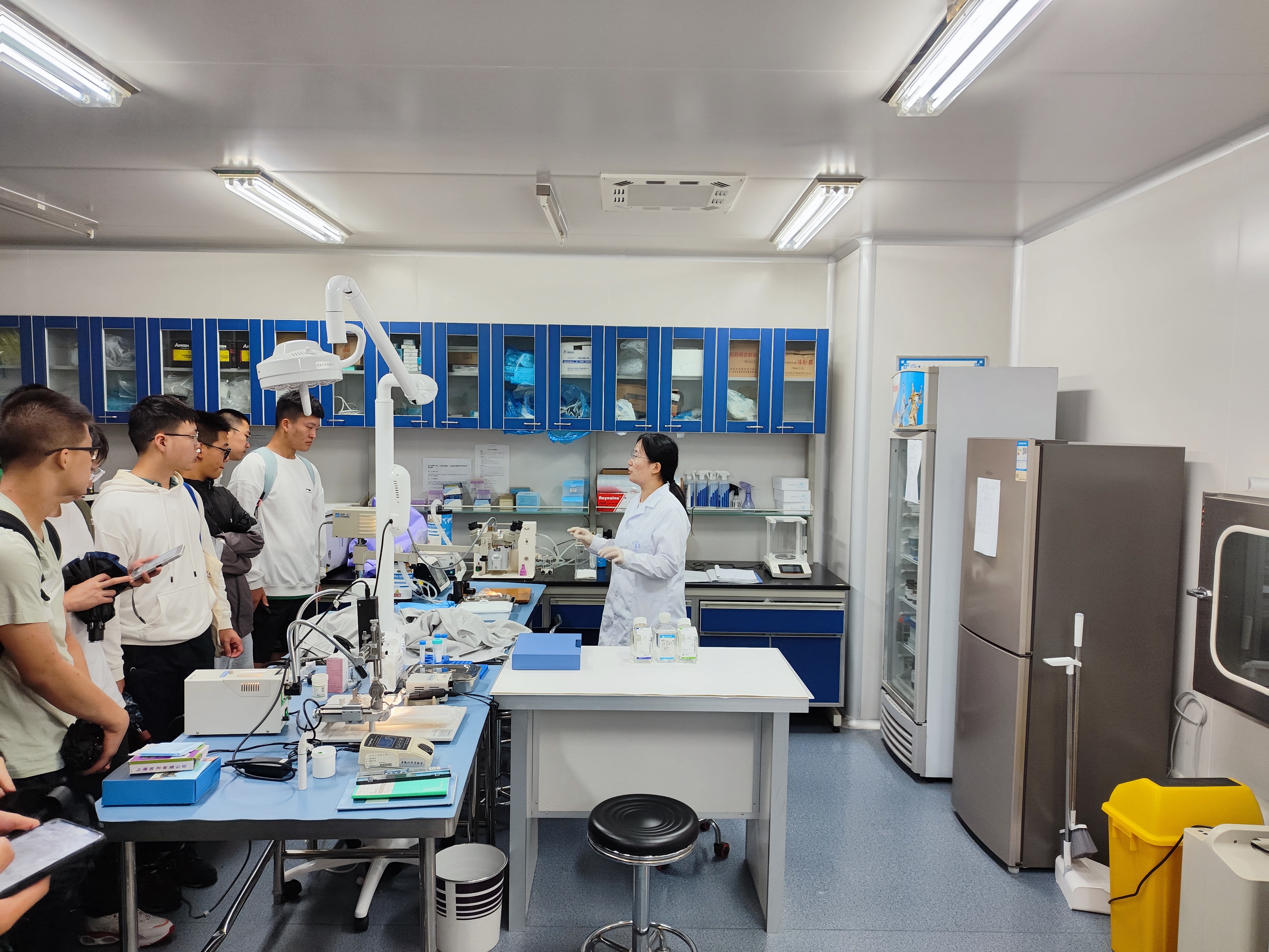 随后,同学们来到了SPF屏障设施中心进行参观。李鑫月、李杰老师为同学们认真地介绍每一个设备承担的主要科研任务以及各种精密仪器的工作原理和应用领域。