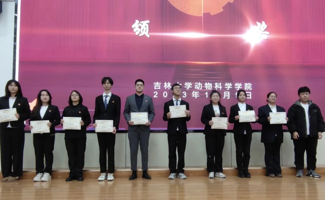经过一个多小时的激烈角逐,2023级动物科学3班团支部代表队“勇攀高峰队”获得一等奖;2023级动物科学1班团支部代表队“初心始发队”获得二等奖;2023级动物科学2班团支部代表队“踔厉奋发队”获得三等奖。与会老师为获奖团队颁发奖项,并合影留念。
