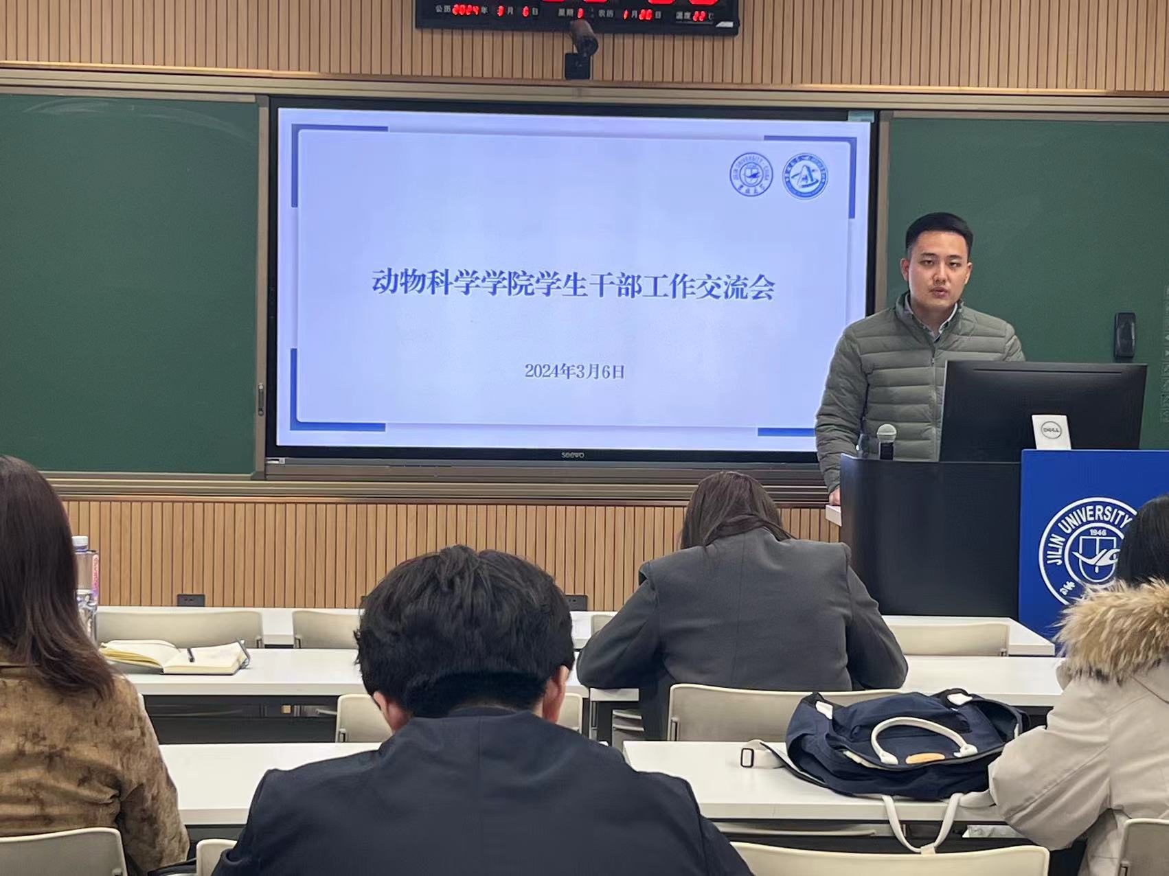 为推动新学期各项工作顺利开展,进一步推进员工干部队伍建设,加强各班级之间的沟通交流,永利集团304官网于3月6日晚在和平校区科学讲堂召开本学期第一次员工干部工作交流会,2021级、2022级各班级班长、团支书、副班长参加此次会议。会议由辅导员王可佳主持。