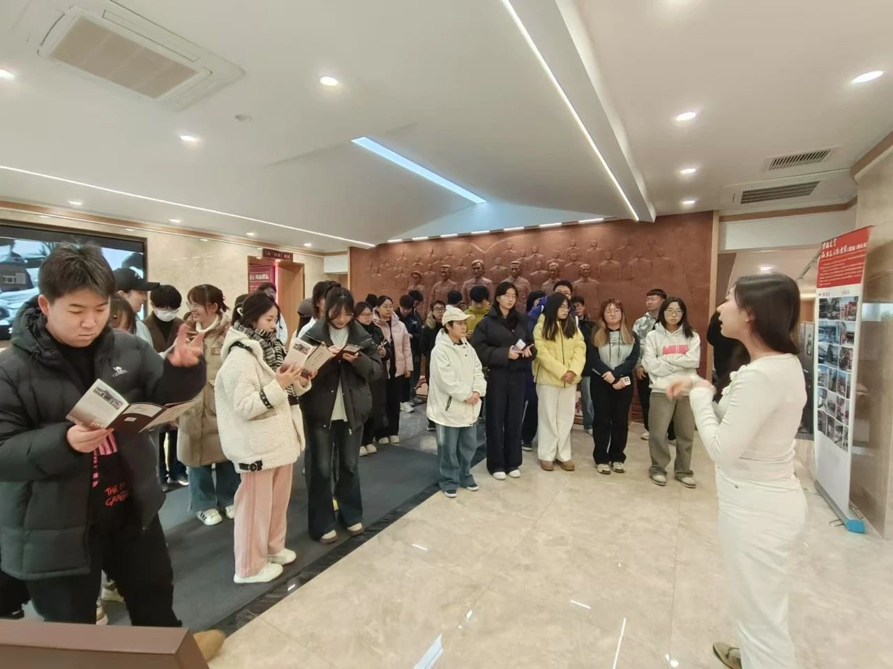 初冬十一月,秋意渐消,晴空之下暖阳朗照,泛黄的树叶翩翩飞舞。永利集团304官网的36名入党积极分子在贾子一老师的带领下共同前往永利304官网名人馆参观。