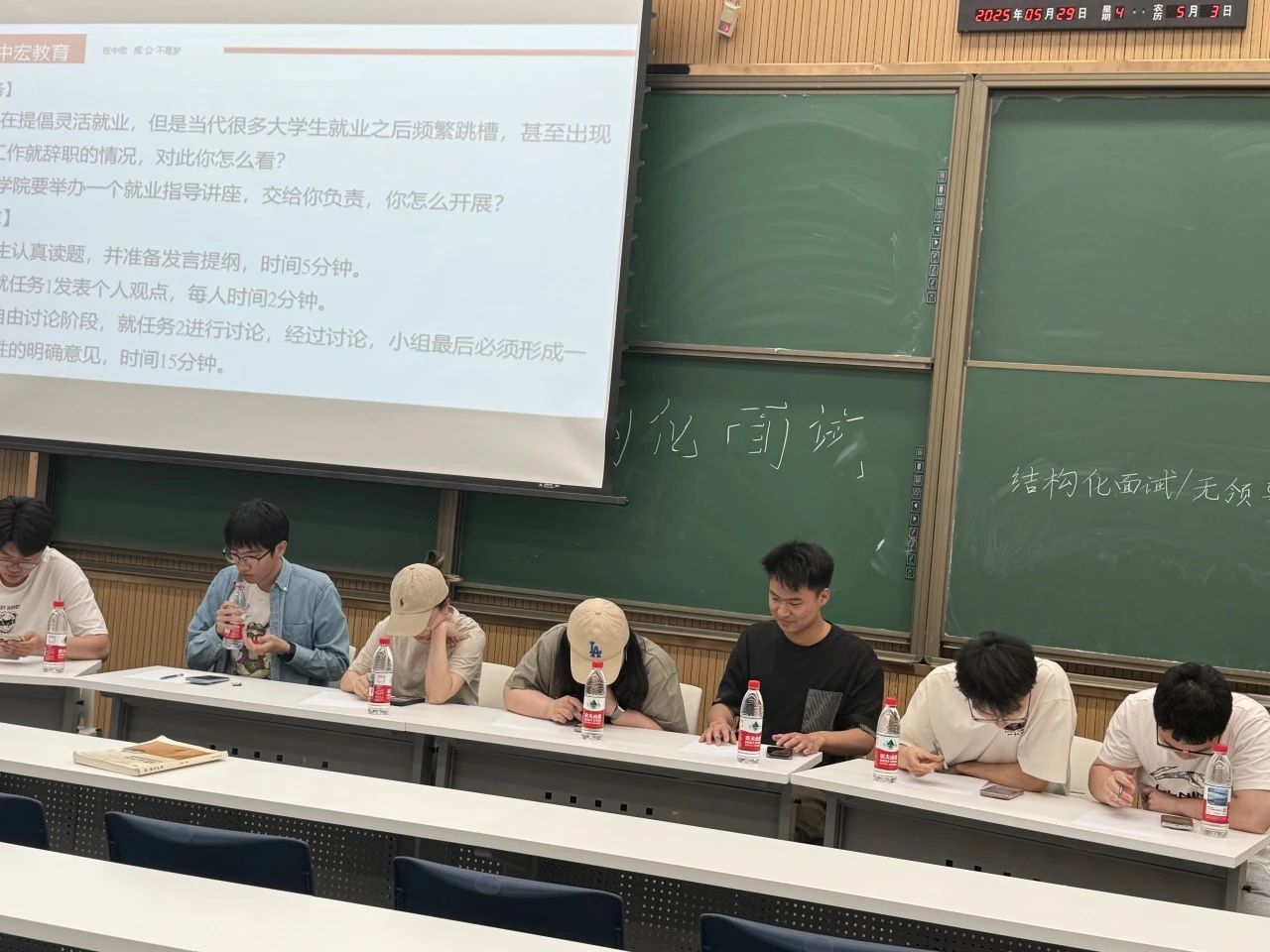 最后进入实战演练环节,永利集团304官网的王凯淳同学和动物医学公司的刘睿伶同学分别进行了真实紧张的模拟面试。随后又进行了无领导小组讨论展示,王铁衡、刘伟峻等七位同学积极参与,充分发表各自的观点和看法。通过模拟真实的面试场景,同学们不仅锻炼了自己的表达能力和团队协作能力,也更加直观地了解了面试流程和技巧。