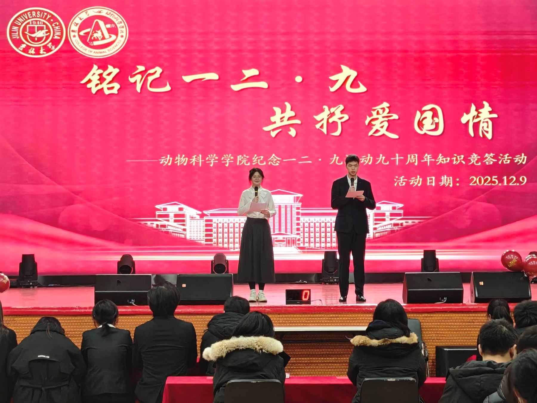 活动在庄严的国歌声中拉开序幕;精彩的文艺展演将现场的气氛推向了高潮。在诗朗诵《青春的答卷》中,学子们以铿锵有力的语调、真挚饱满的情感,回望1935年“一二·九”运动中爱国青年的热血抗争,诉说新时代青年对历史的铭记与对使命的坚守,生动诠释了青春与时代同频、与祖国同行的深刻内涵。