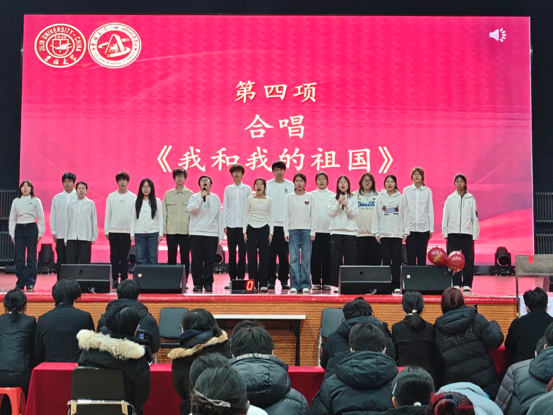 合唱《我和我的祖国》中,悠扬的歌声传递着对祖国山河的眷恋、对民族复兴的期盼,爱国情怀在歌声中交融激荡,汇聚成砥砺前行的磅礴力量。