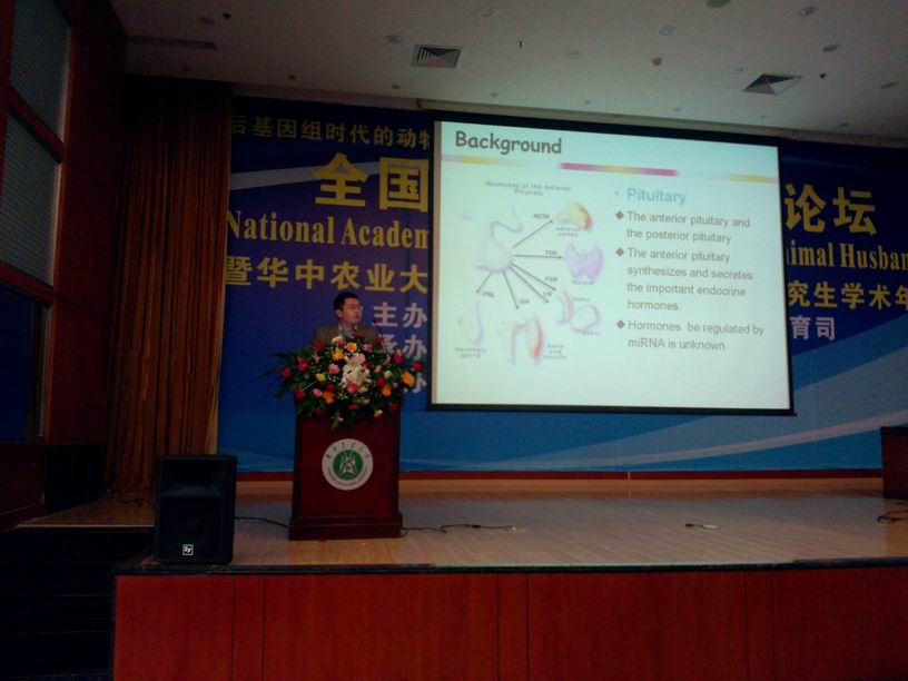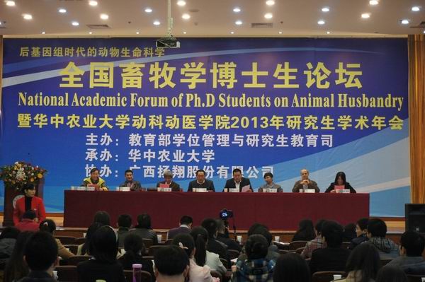 2013年11月22日至25日,由教育部学位管理与研究生教育司主办、华中农业大学承办的2013年“后基因组时代的动物生命科学”全国畜牧学博士生学术论坛在武汉举行。永利集团304官网派出四名博士生参加了本次论坛。李宁院士,陈焕春院士及来自全国畜牧学相关高校和科研院所的畜牧学相关领域的国内外知名专家、学者和优秀企业家与会点评,并就“后基因组时代的动物生命科学”前沿问题做特邀报告,会议举行博士生交流报告30场,会议墙报展示60个,由8名博士生担任论坛主持人,8名青年教师担任点评专家。30名畜牧学相关领域博士生就学科前沿问题做了报告,并展开讨论。