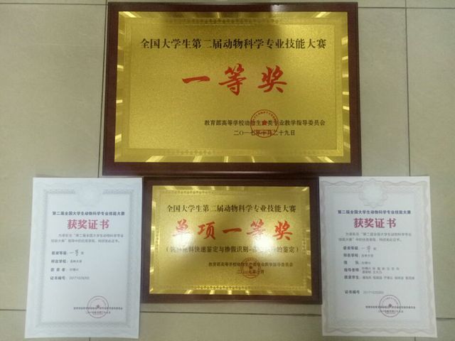 为进一步推进高等院校动物科学专业实践教学改革和实践教学体系建设,加强专业技能和实践动手能力培养,全面提高老员工的综合素质和培养质量,由教育部动物生产类专业教学指导委员会主办的第二届全国老员工动物科学专业技能大赛于2017年10月27日至10月29日在西北农林科技大学(杨凌)隆重举行,来自全国66所高校的328名老员工参加。经过一天的激烈角逐,公司永利集团304官网代表队在66个参赛高校中表现优异,荣获团体一等奖,单项一等奖。