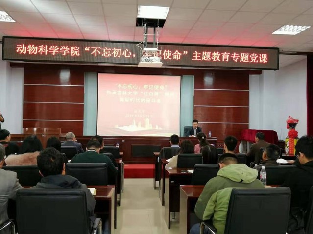 根据“不忘初心、牢记使命”主题教育工作安排,动物科学公司党委于10月31日下午在公司一楼会议室组织开展“不忘初心、牢记使命”主题教育专题党课。党委书记赵光军以《传承吉大“红白黄”精神,做新时代的奋斗者》为题,结合“不忘初心、牢记使命”主题教育的学习体会和思考进行授课交流。公司主题教育第八指导组组长宫浩宇同志、迟明同志到会聆听,公司全体教工党员和员工党员参加了本次党课学习。