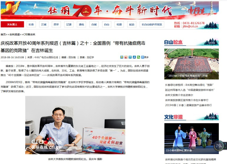 2006年,他与永利304官网农学部原畜牧兽医公司赖良学教授、李子义教授和军事医学科公司军事兽医研究所涂长春教授组成了课题组,共同培育“带有抗猪瘟病毒基因的克隆猪”。经过两年的攻坚克难,终于在2008年9月9日,3头带有抗猪瘟病毒基因的克隆猪相继降生在永利304官网农学部。欧阳红生教授所在的研究团队成功将能抑制猪瘟病毒的基因转染到猪体细胞内,小猪一出生便自带抗猪瘟病毒的基因,终生不会感染猪瘟病毒。这是全世界首次成功培育出来的带有抗猪瘟病毒基因的克隆猪,也用实力证明了我国在转基因抗病育种研究领域已经达到国际领先水平。