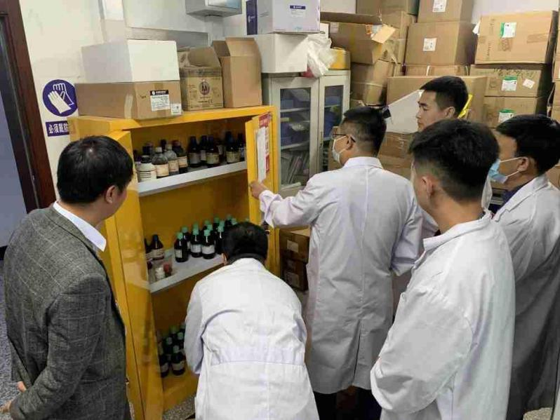 检查中,对危险化学品管理落实到位的畜牧兽医楼501室和518室、实验室整洁规范的动科楼303室提出表扬,对假期配合公司彻底清理楼道堆放物品,清理疏散通道的生物技术各实验室的付出表示肯定与感谢。对于部分实验室存在的垃圾处理不及时、危化品储存柜双人双锁落实不到位、杂物堆积、冰箱无试剂目录、仪器设备缺少使用记录等共性问题,提出了自查整改意见,要求立查立改。