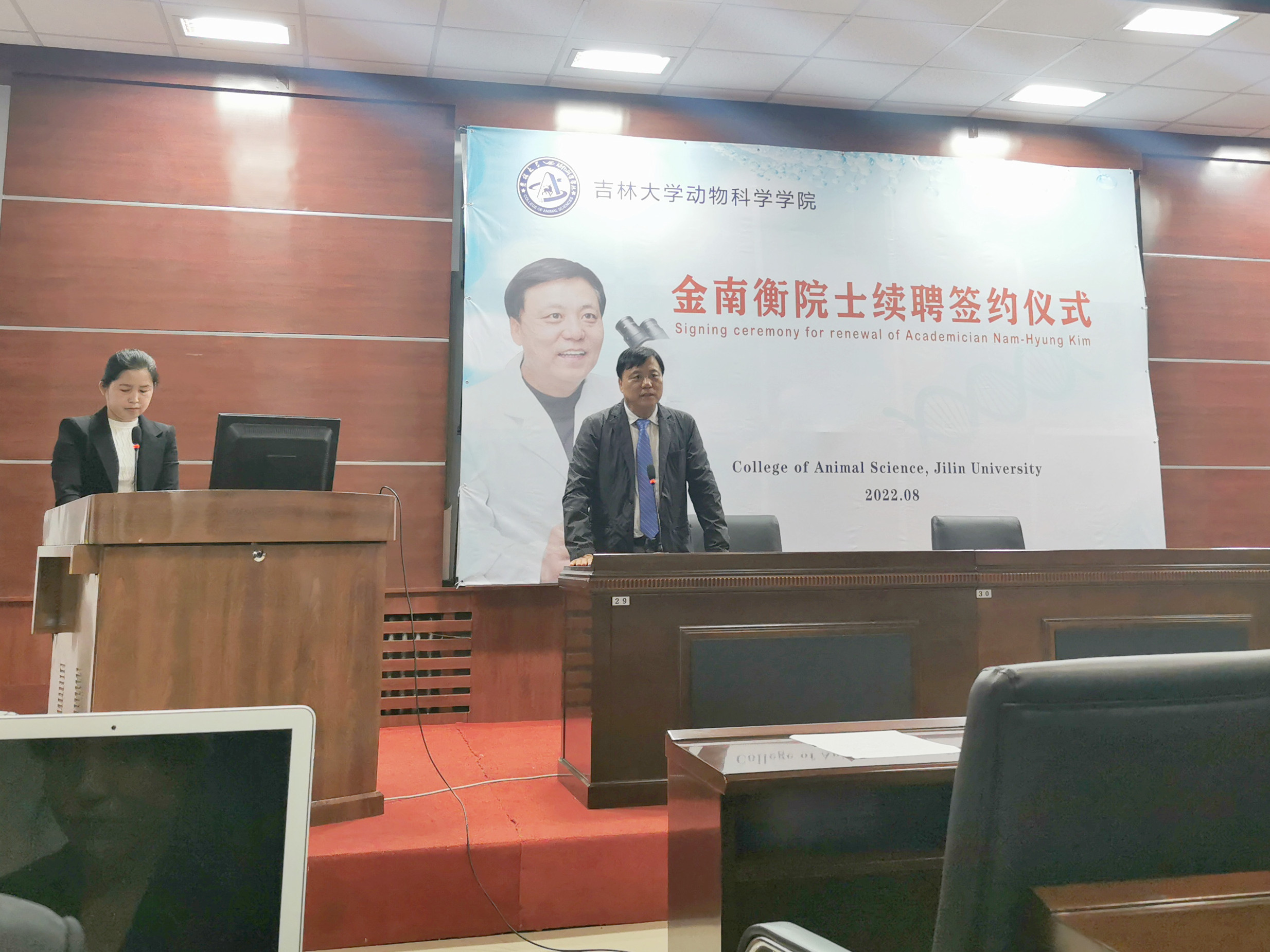 8月29日上午,永利集团304官网在公司一楼会议室举行韩国科学与技术院院士、韩国国立忠北大学金南衡教授续聘签约仪式,公司领导班子成员和师生代表线下参加了仪式,全体2022级本科生和研究生新生线上参加,仪式由副经理张明军教授主持。