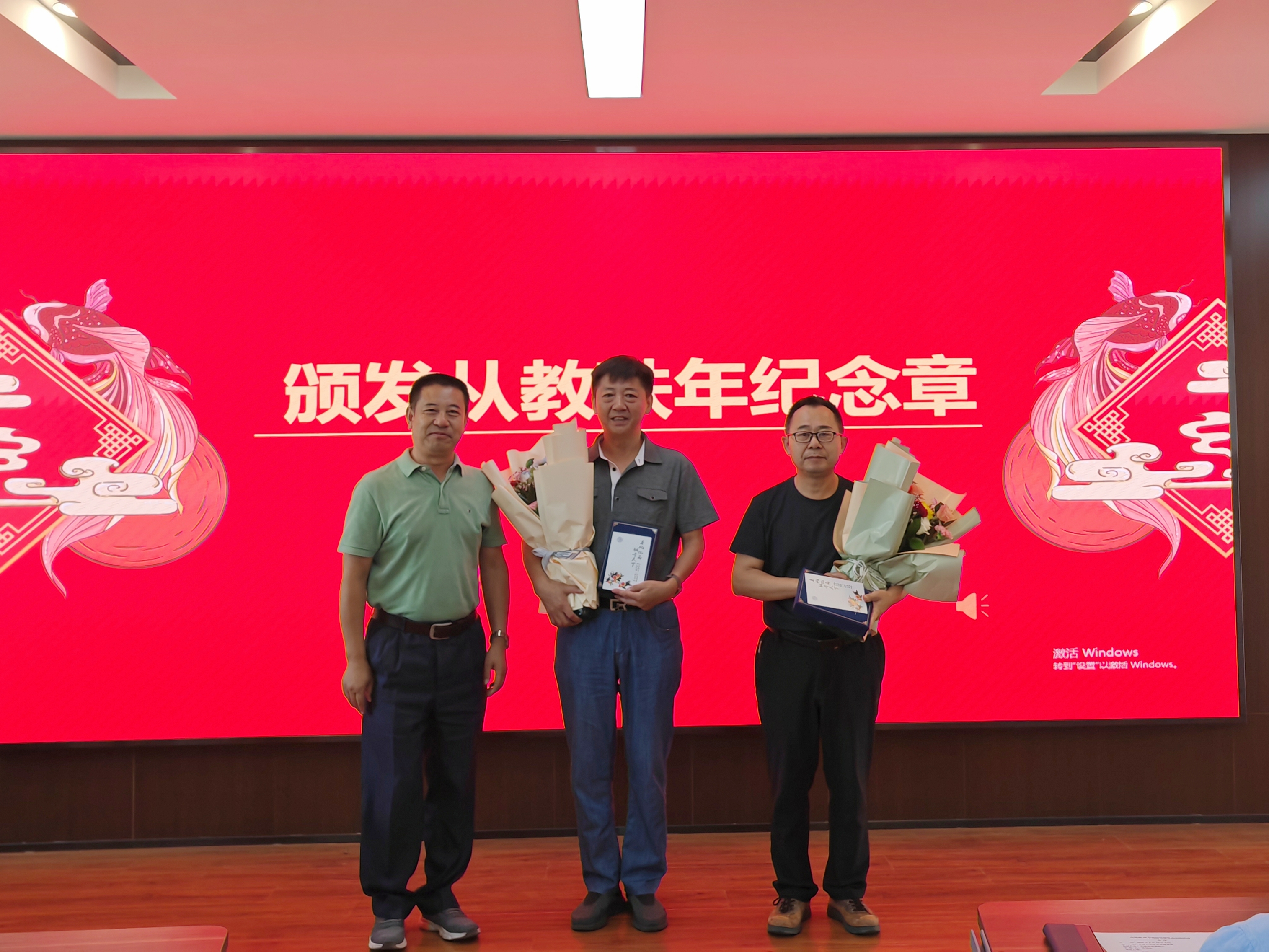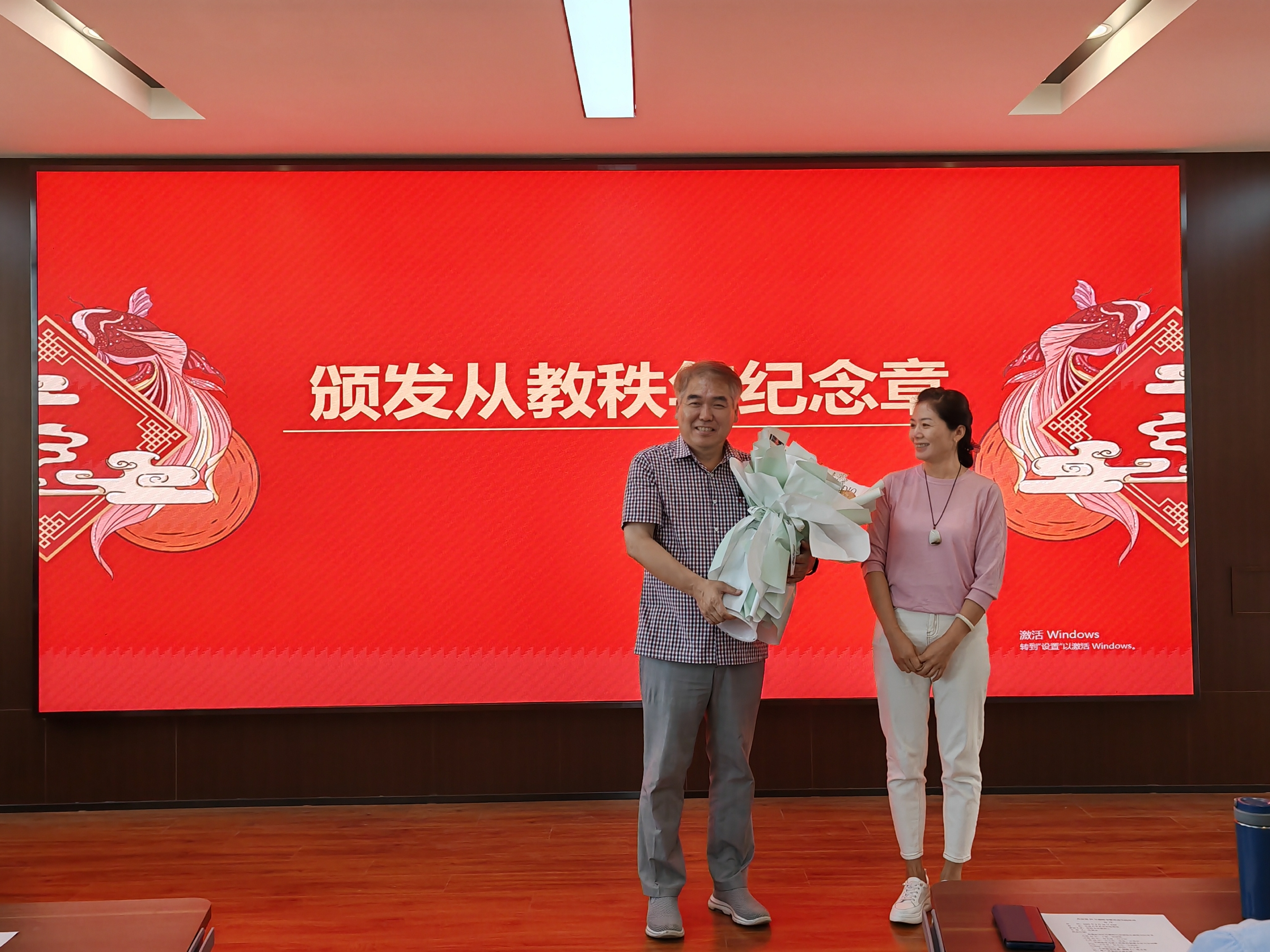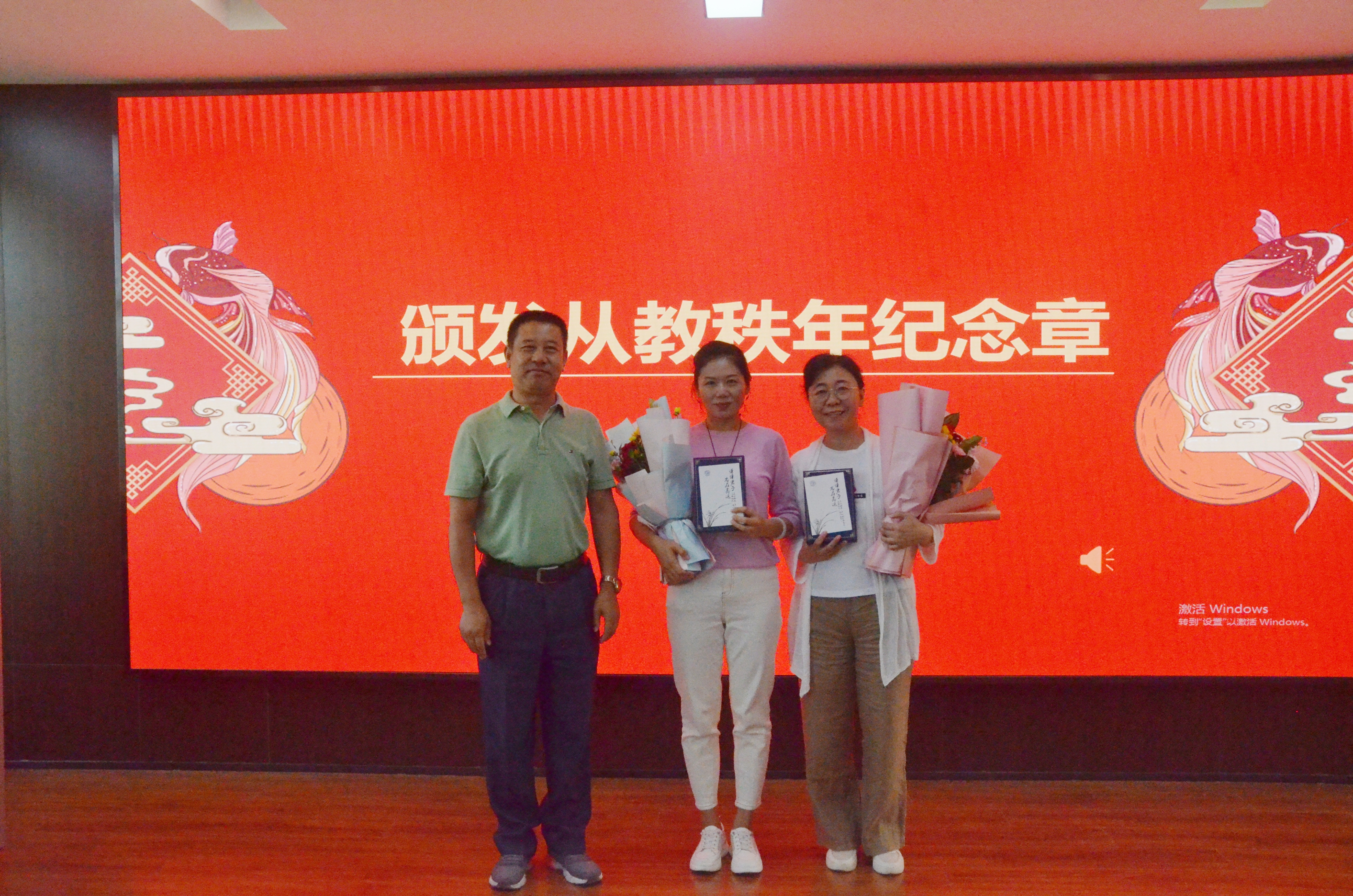 活动中,党委书记高福和为从教10年、20年和30年的教师代表颁发从教秩年纪念章和鲜花;教师代表丁瑜为唐敖庆讲座教授孔一根教授敬献鲜花;公司领导为公司2021年以来新入职教师佩戴永利304官网校徽,并组织全体新入职教师进行入职宣誓。