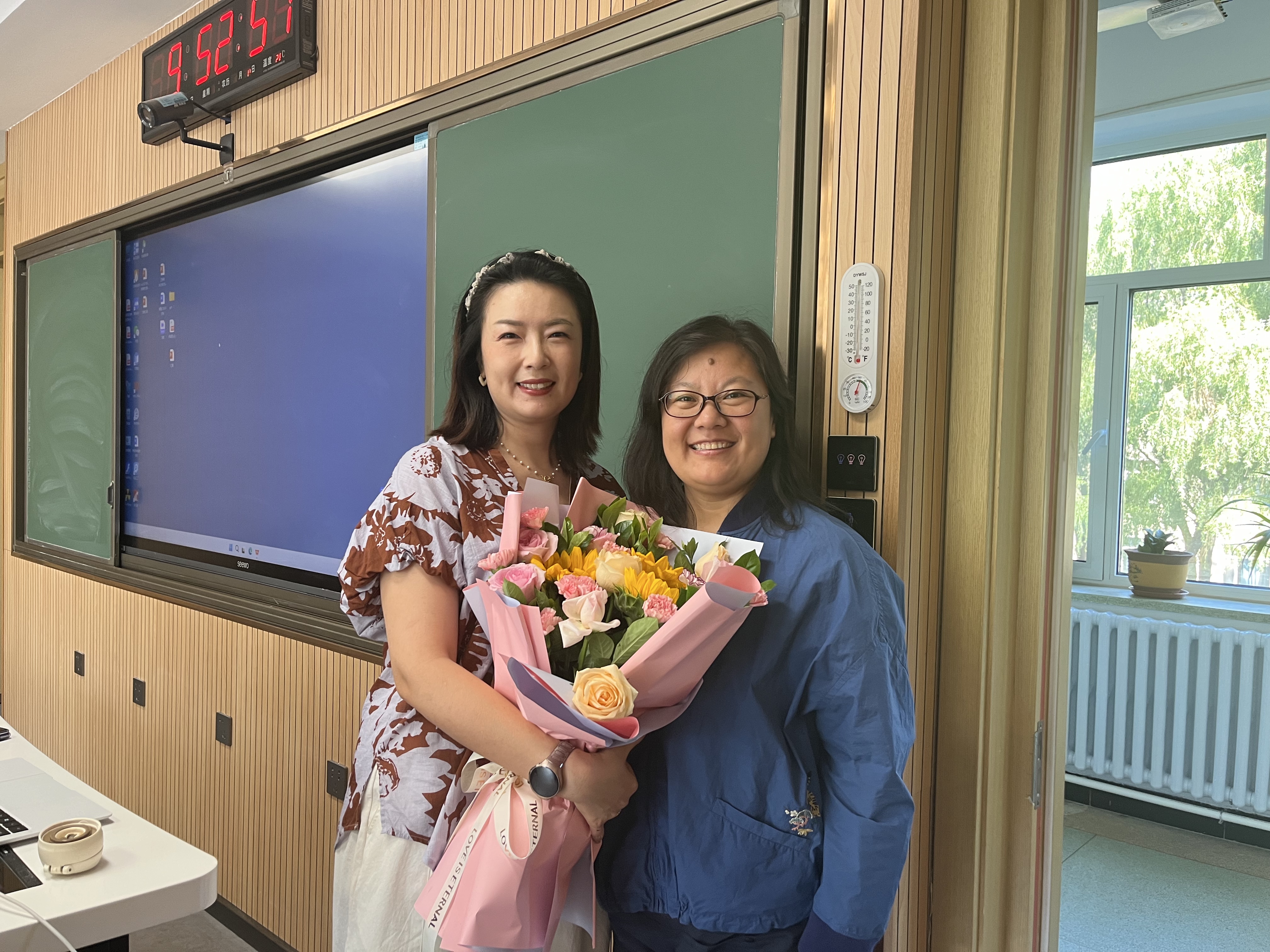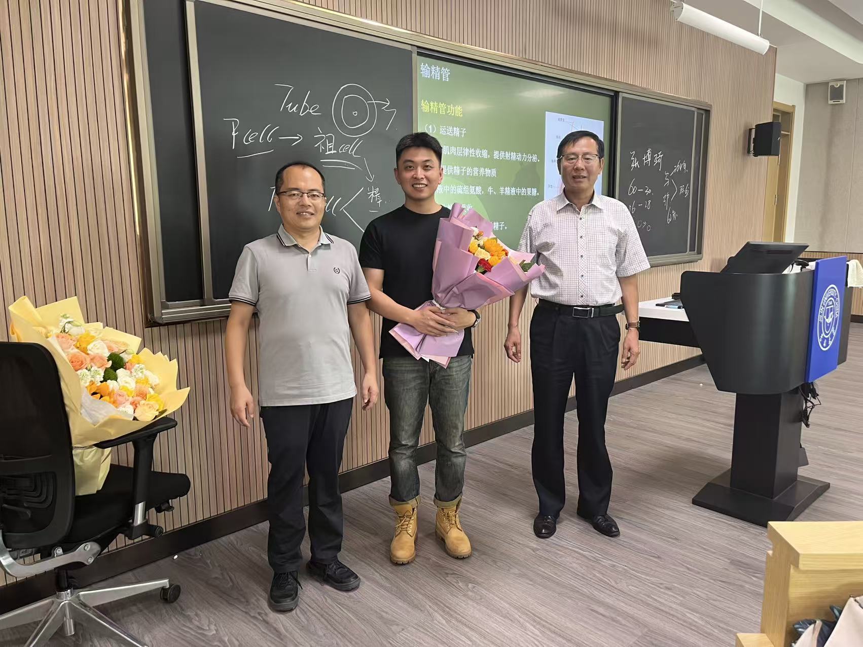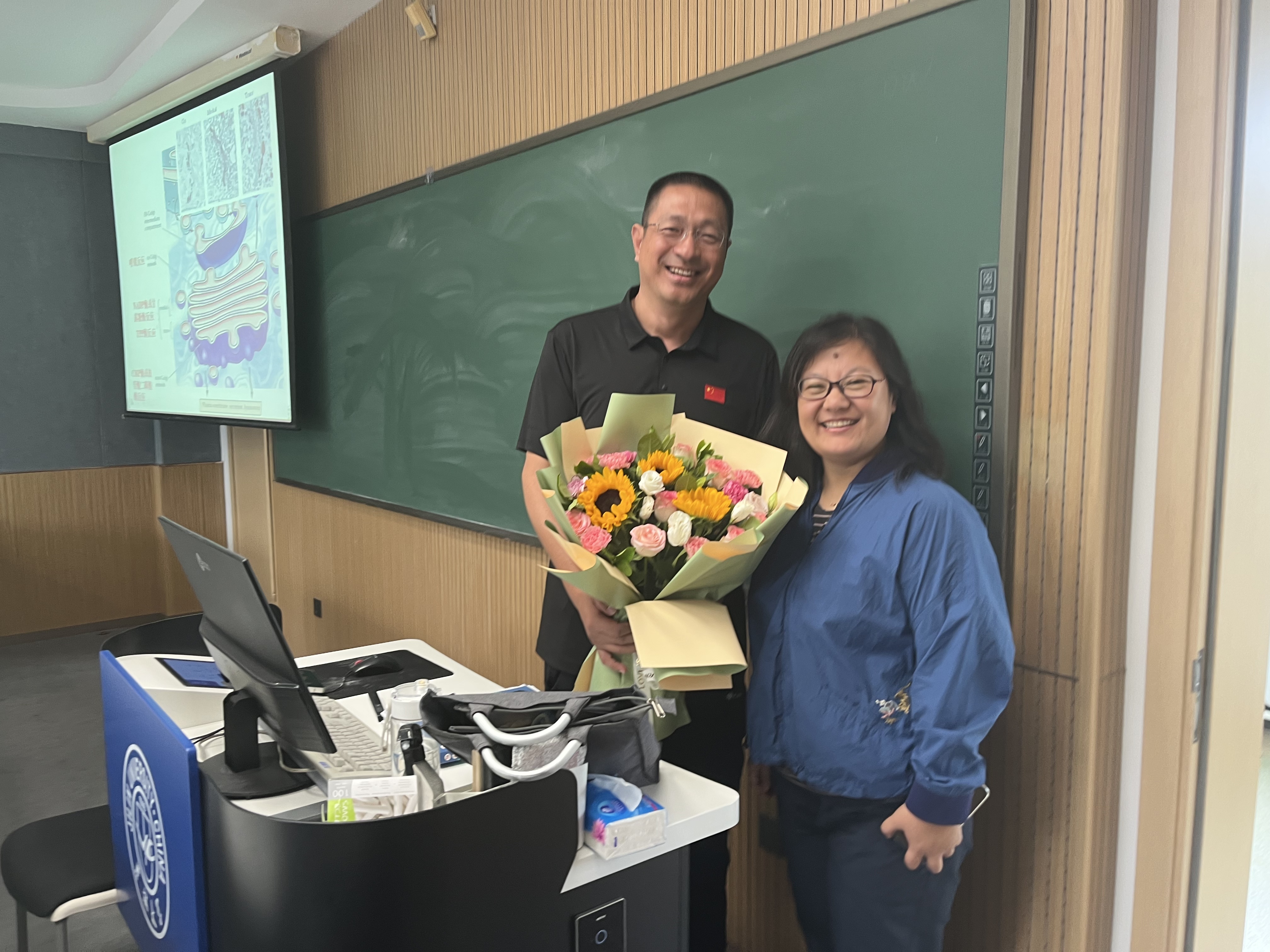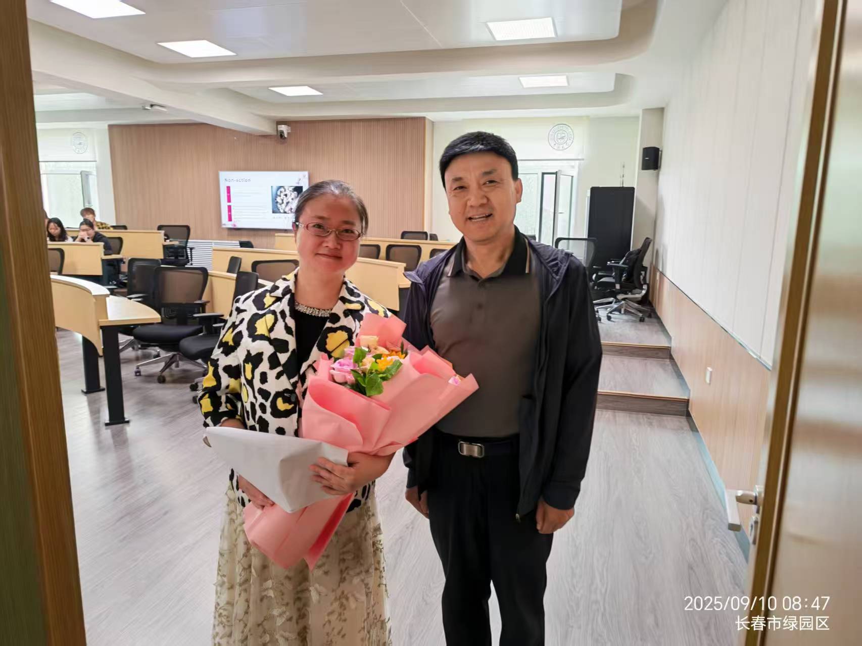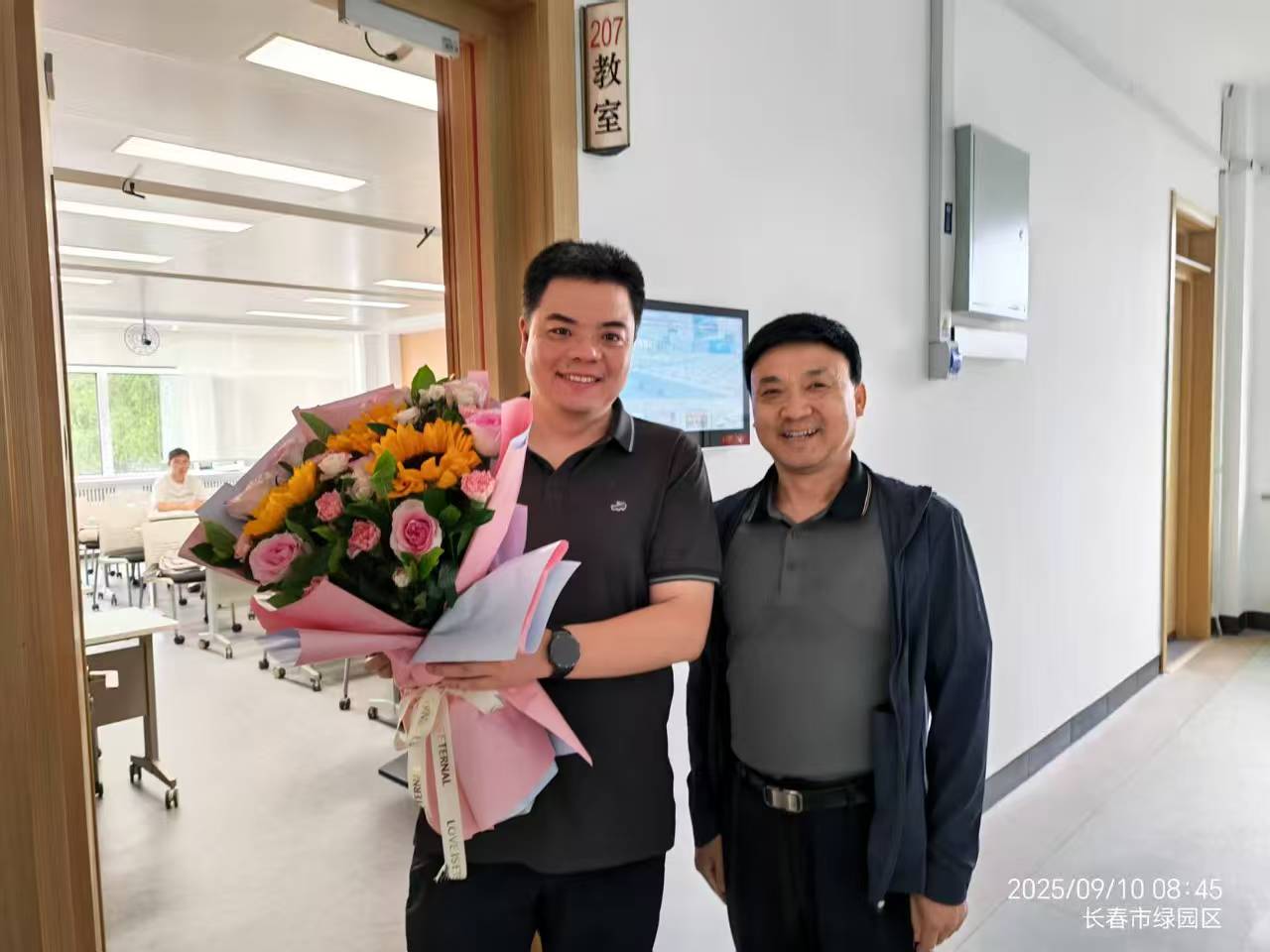 公司党委书记徐仁元、副经理袁宝、冷国永、李纯锦、逄大欣,党委副书记兼副经理、纪委书记肖建荣、分别来到和平校区科学讲堂和动物科技国家级示范实验教学中心楼等14间教室,向一线教师致以教师节的诚挚慰问和崇高敬意,感谢广大一线教师为公司员工培养作出的贡献,并送上鲜花和节日祝福。