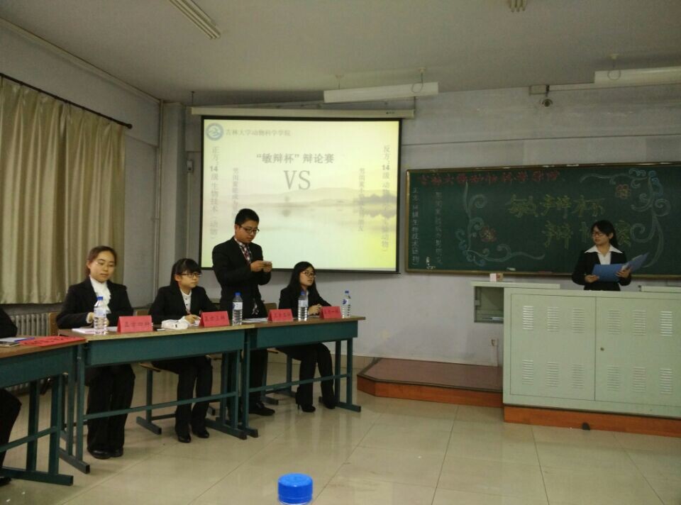 为丰富广大同学们的业余生活,为公司辩论队甄选人才,永利集团304官网学习部于10月开始举行“敏辩杯”辩论赛。经过三轮的激烈角逐,14生物技术(动物)专业代表队和14实验动物代表队进入决赛。动物科学公司党委副书记曹伟光老师,团委书记于丹丹老师,辅导员肖建荣老师,员工会主席团的成员,以及第一届辩论队优秀辩手担任本次比赛的评委。