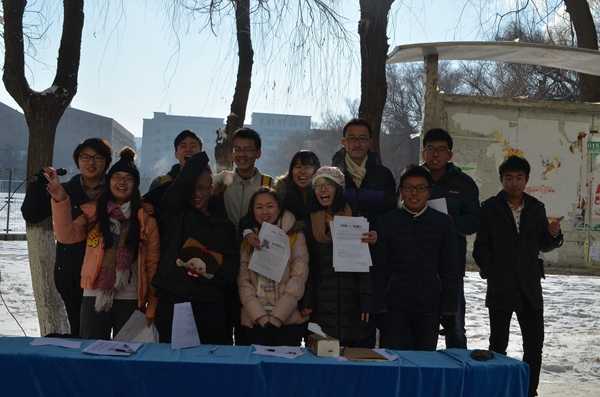想法一提出,便得到了班级、专业同学的积极响应,经过五天的认真准备和策划,爱心志愿者招募活动于12月11日在和平校区5号公寓楼前顺利展开,20余名专业志愿者立于寒风中向过往的老员工宣传活动、发放传单、登记志愿者信息,贴心的活动内容以及高涨的志愿者热情吸引了同学们纷纷驻足了解并主动报名,短短一个小时的时间里共有来自校区四个公司的将近90名同学登记报名。
